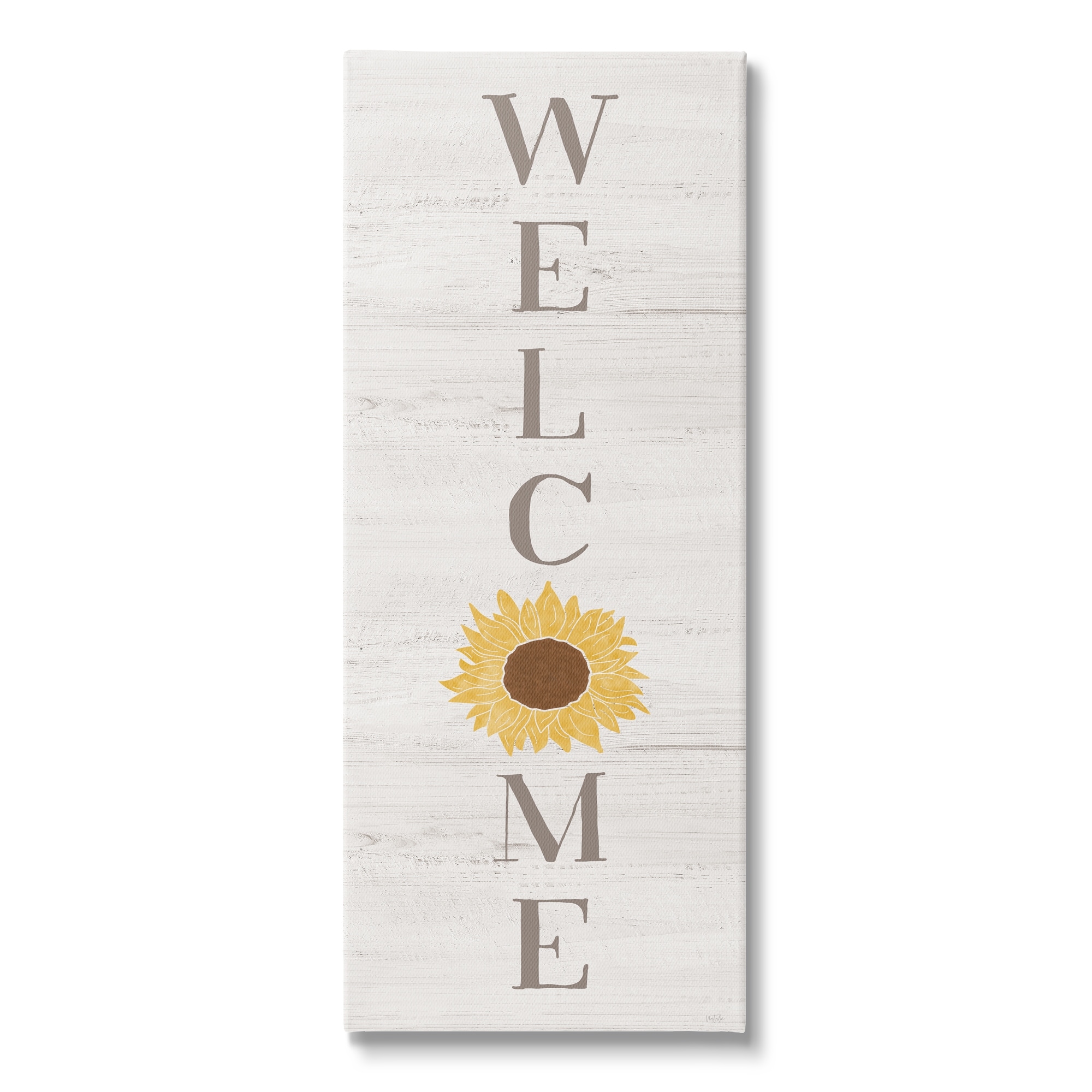 Stupell Industries Vertical Welcome Sign Rustic Sunflower Grain Pattern Canvas Wall Art, Design by Natalie Carpentieri