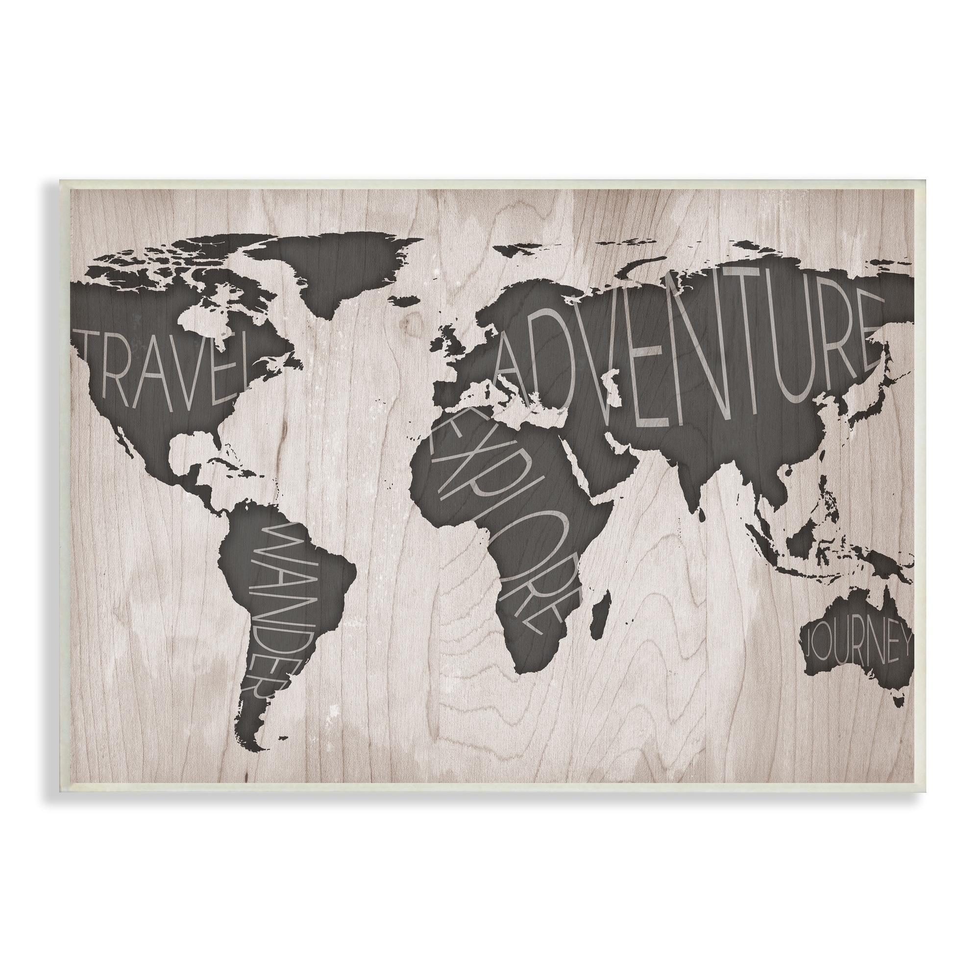 Stupell Industries Travel Wander Explore Rustic World Map Grain Pattern Wood Wall Art - Brown
