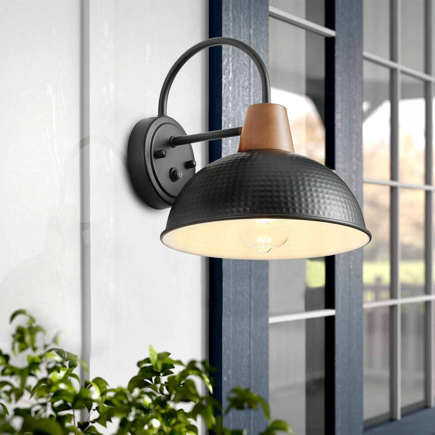 Industrial 1-Light Wood Grain Finish Accented Bathroom Wall Sconce with Metal Shade