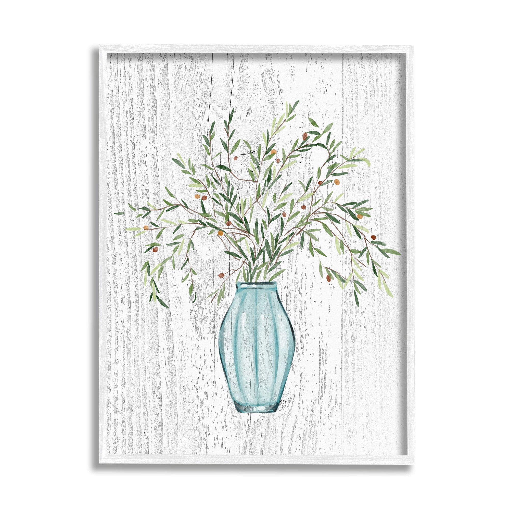 Stupell Industries Botanical Bouquet Vase Hanging Leaves Grain Pattern Framed Wall Art, Design by Ziwei Li