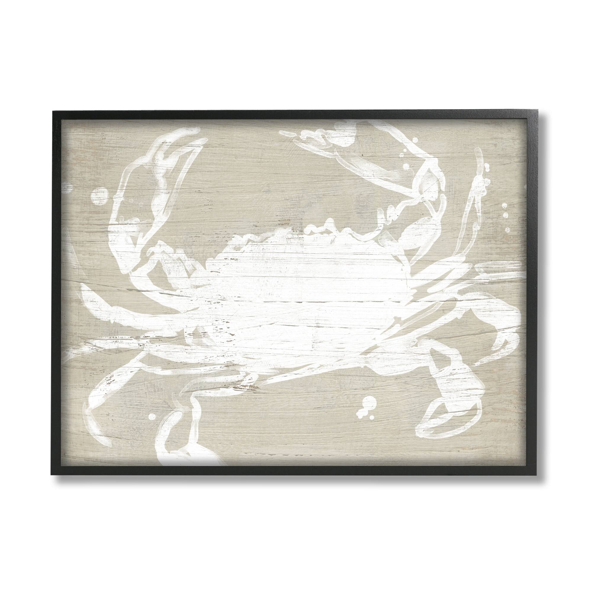 Stupell Soft Nautical Crab Crustacean Rustic Grain Pattern Framed Wall Art - Tan