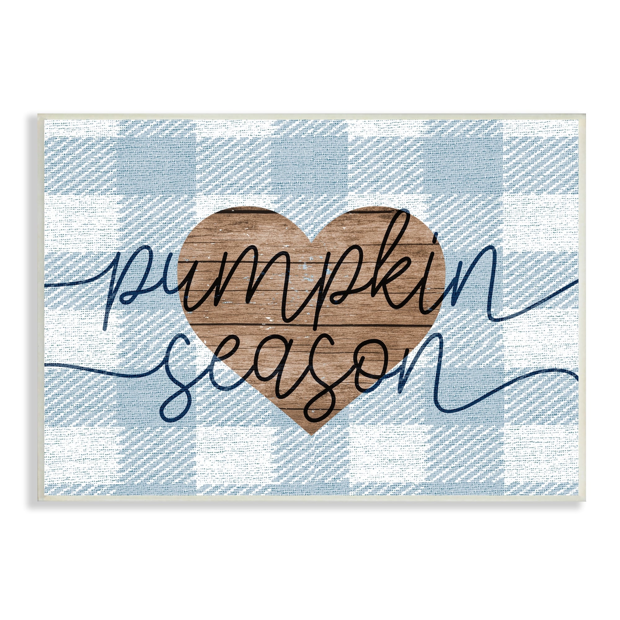 Stupell Pumpkin Season Grain Pattern Heart Blue Checker Plaid Wood Wall Art