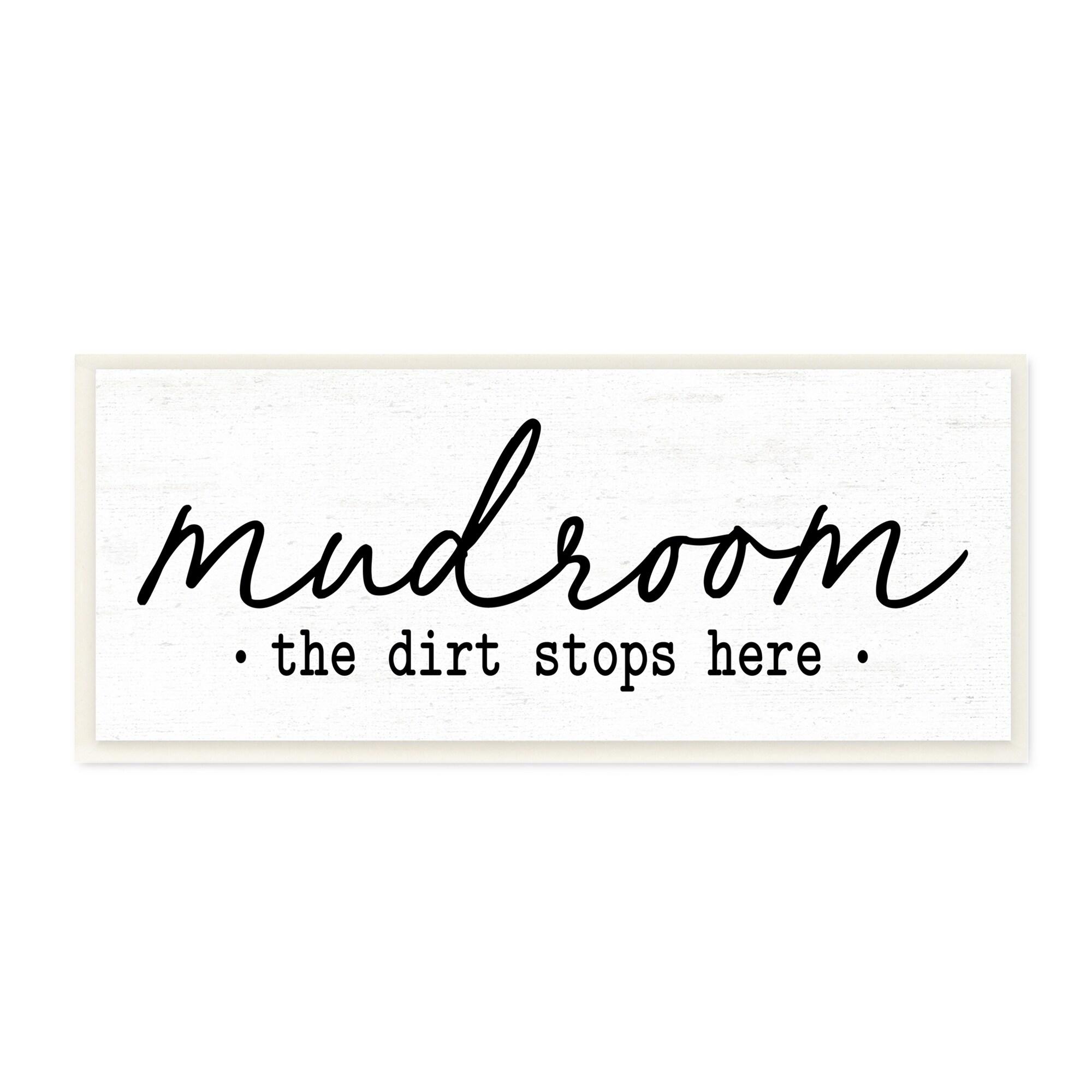 Stupell Industries Dirt Stops Here Mudroom Sign Rustic Grain Pattern Wood Wall Art, Design by Lettered and Lined - White