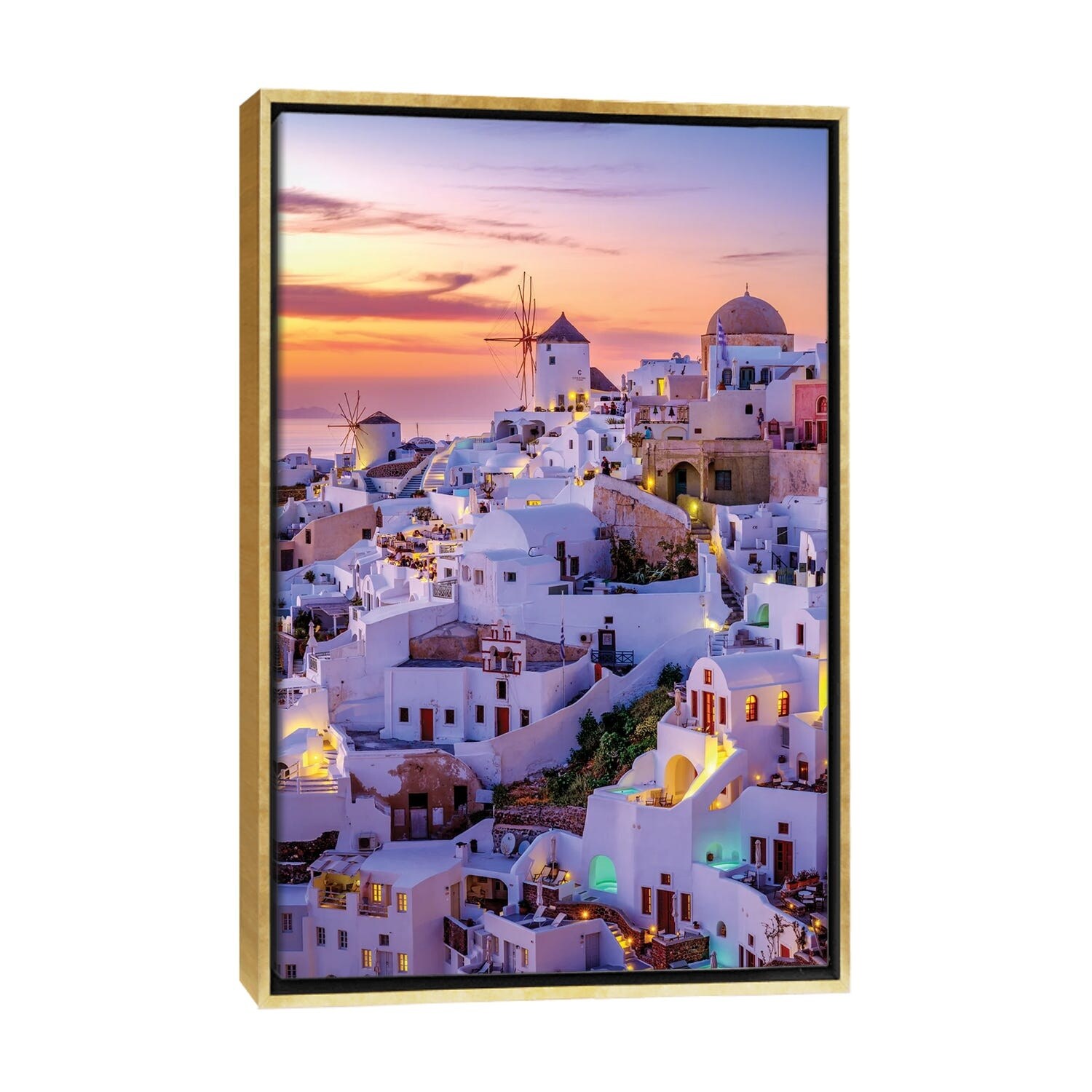 iCanvas "Greece, Santorini, Oia. Sunset on Coastal Town." by Jaynes Gallery Canvas Print