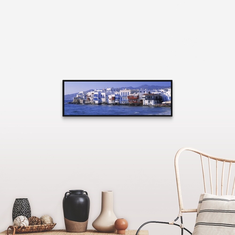 "Mykonos Cyclades Greece" Black Float Frame Canvas Art