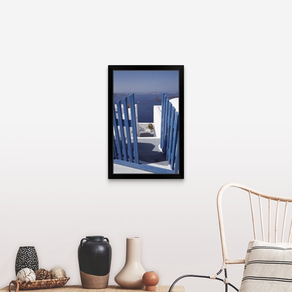 Santorini Blue Gate Sea Greece Gallery Wrapped Floater-framed Canvas