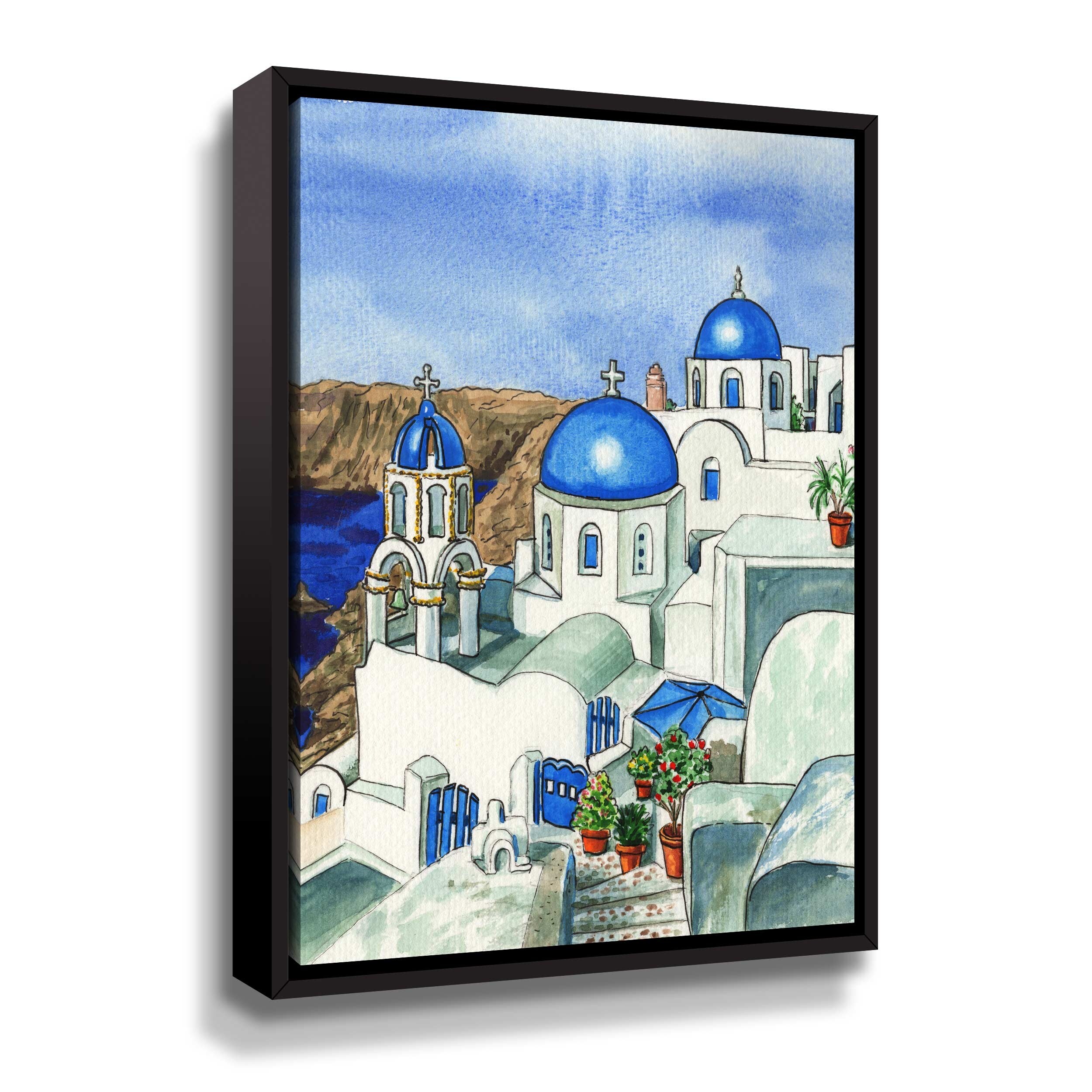 Greece Blue Roofs of Santorini Island by Irina Sztukowski Gallery Wrapped Floater-framed Canvas