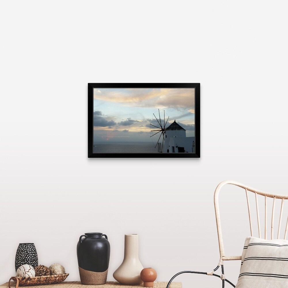 "Traditional windmill on the coast, Oia, Santorini, Cyclades Islands, Greece" Black Framed Print
