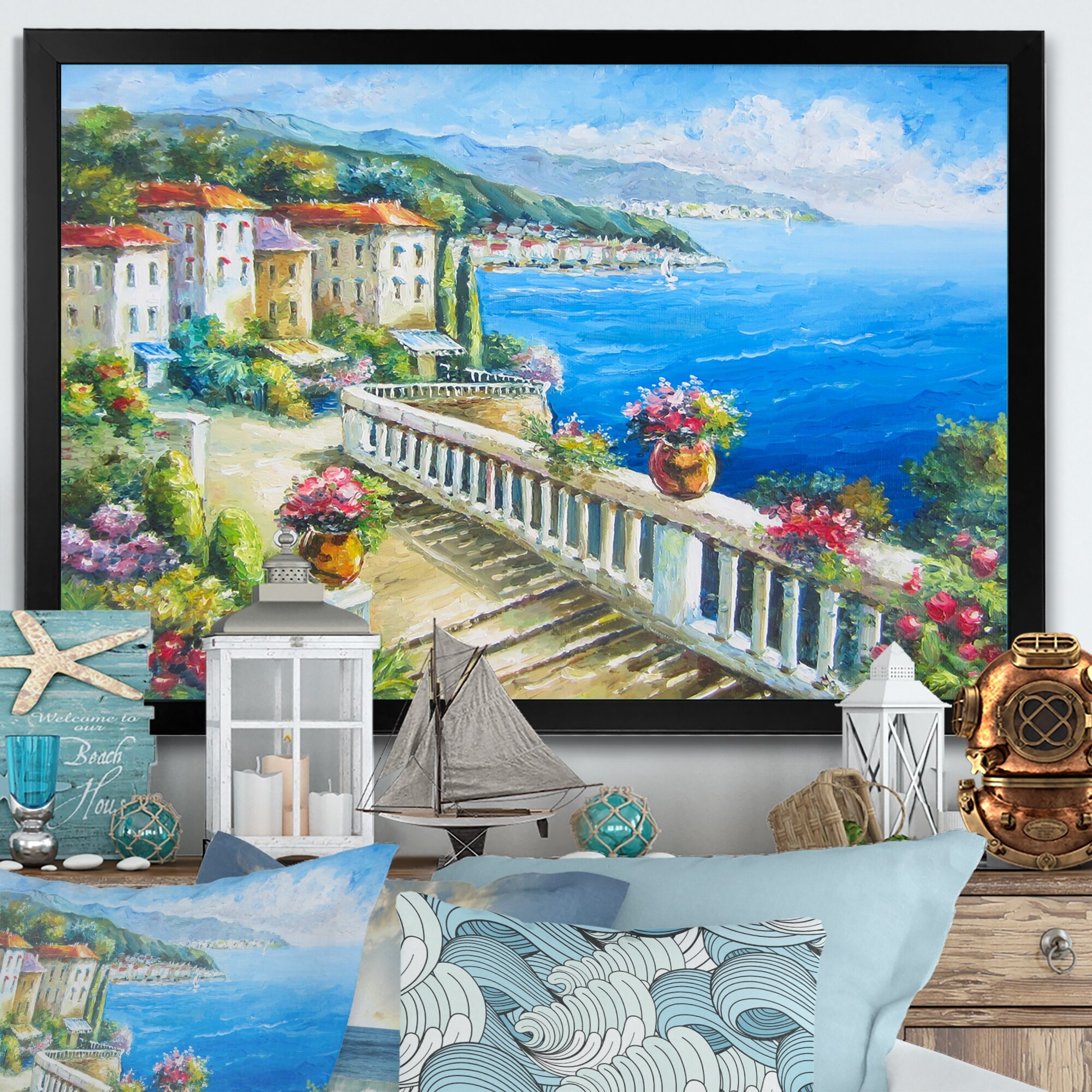 Designart "Beautiful Greece Coastal Landscape III" Nautical & Coastal Framed Art Print