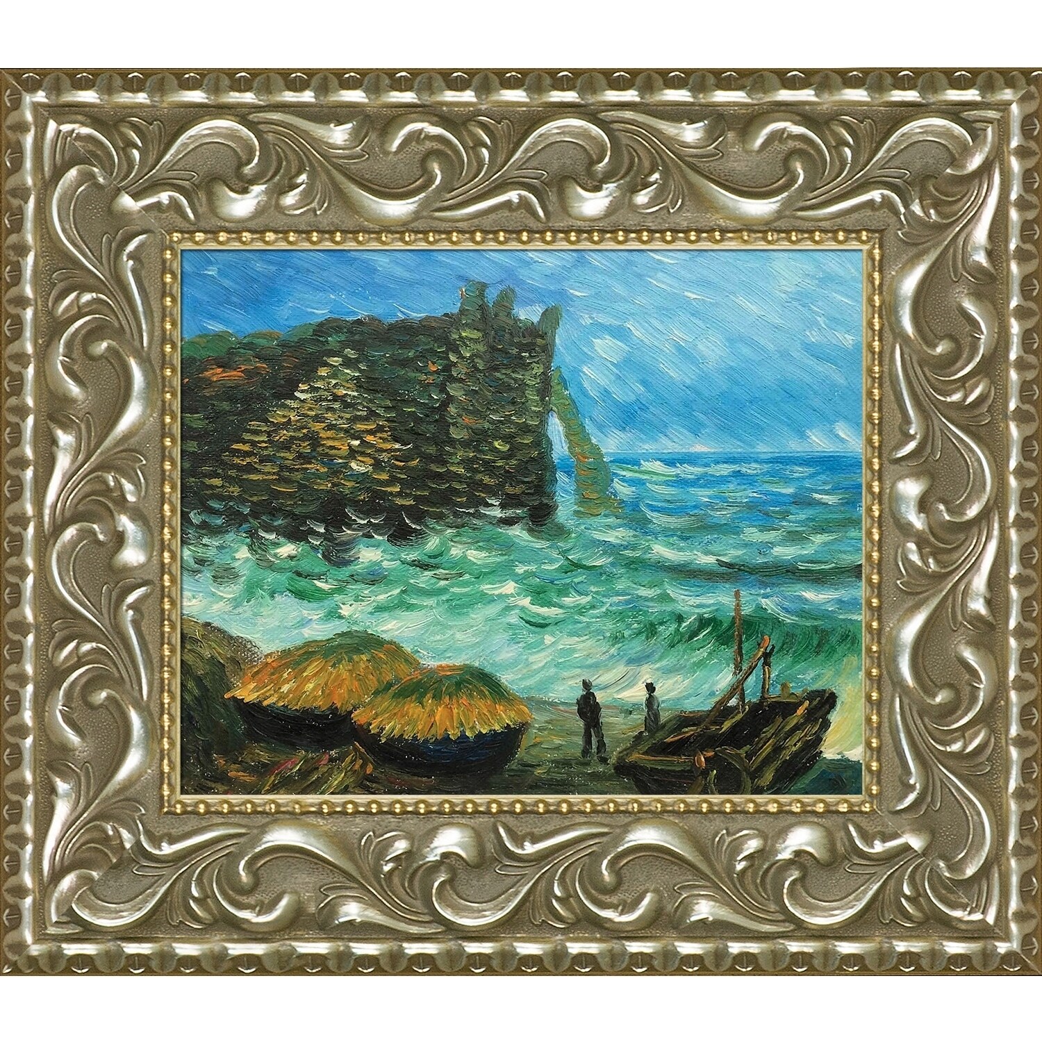 La Pastiche Claude Monet 'Rough Sea at Etretat' Hand Painted Framed Canvas Art