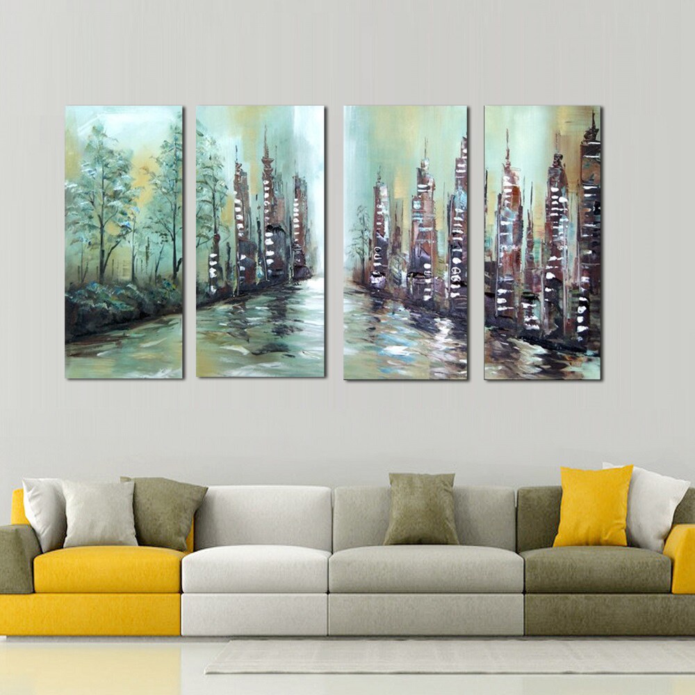 Hand-painted Modern Riverscape 4-panel Canvas Art 1136