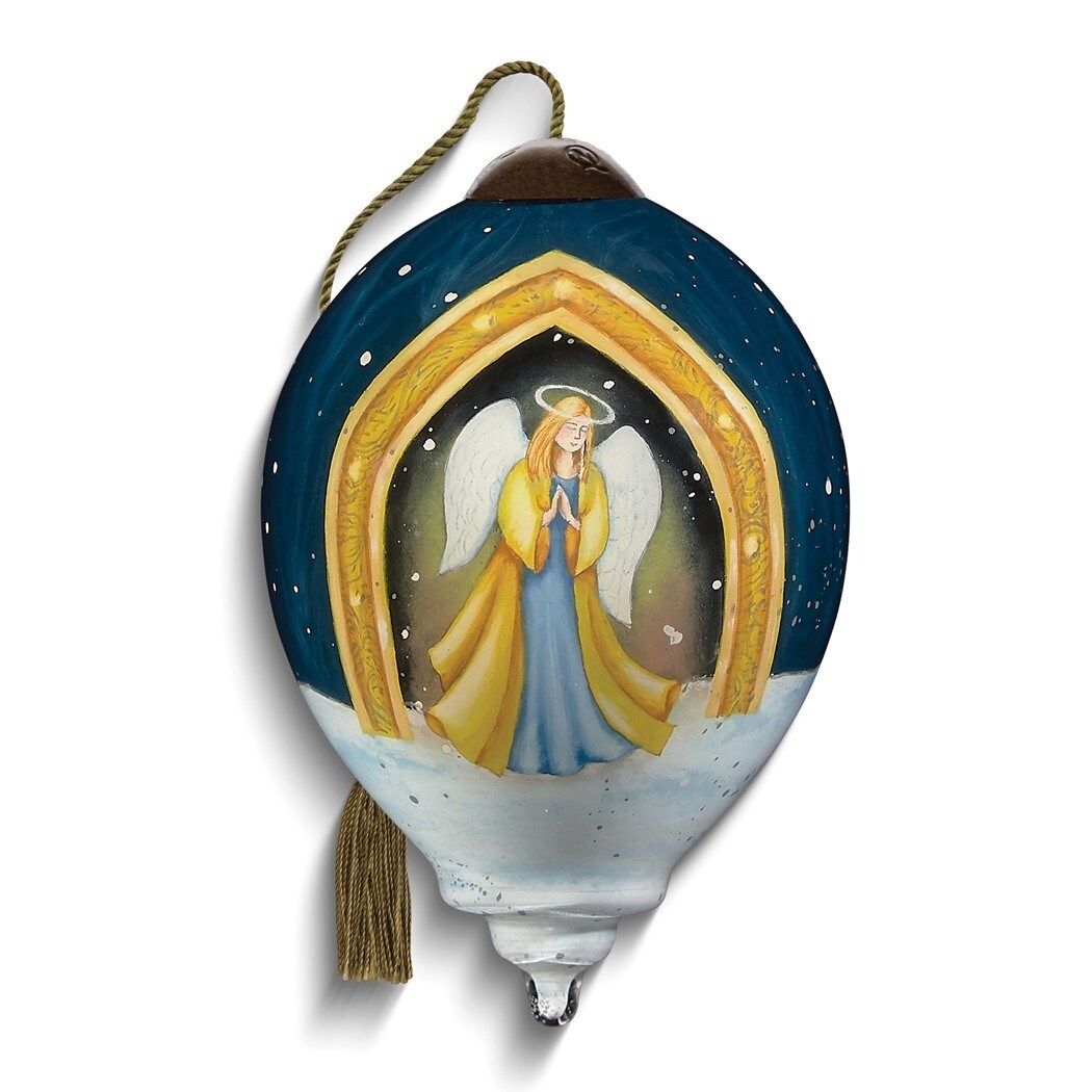 Curata Peace on Earth Golden Angel By Kitt Wichmann Hand-Painted Glass Ornament