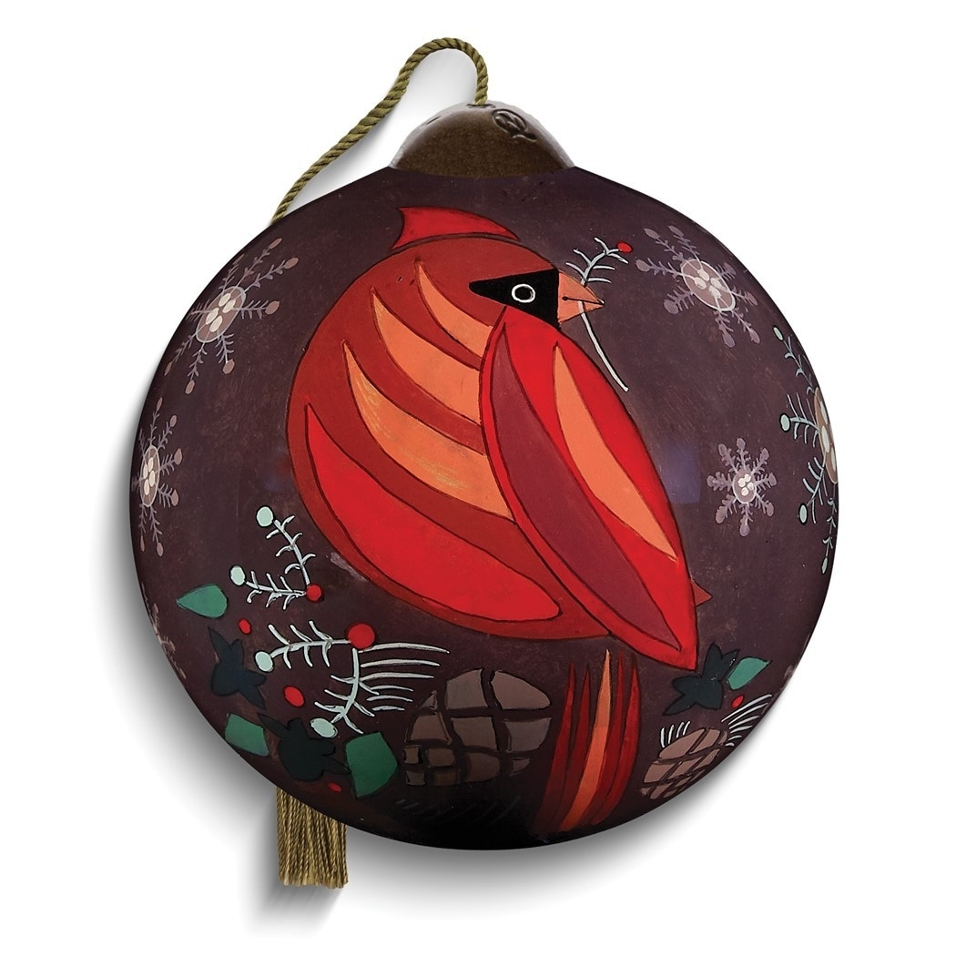 Curata Seasons Greetings Cardinal By Amanda Shufflebotham Hand-Painted Glass Ornament