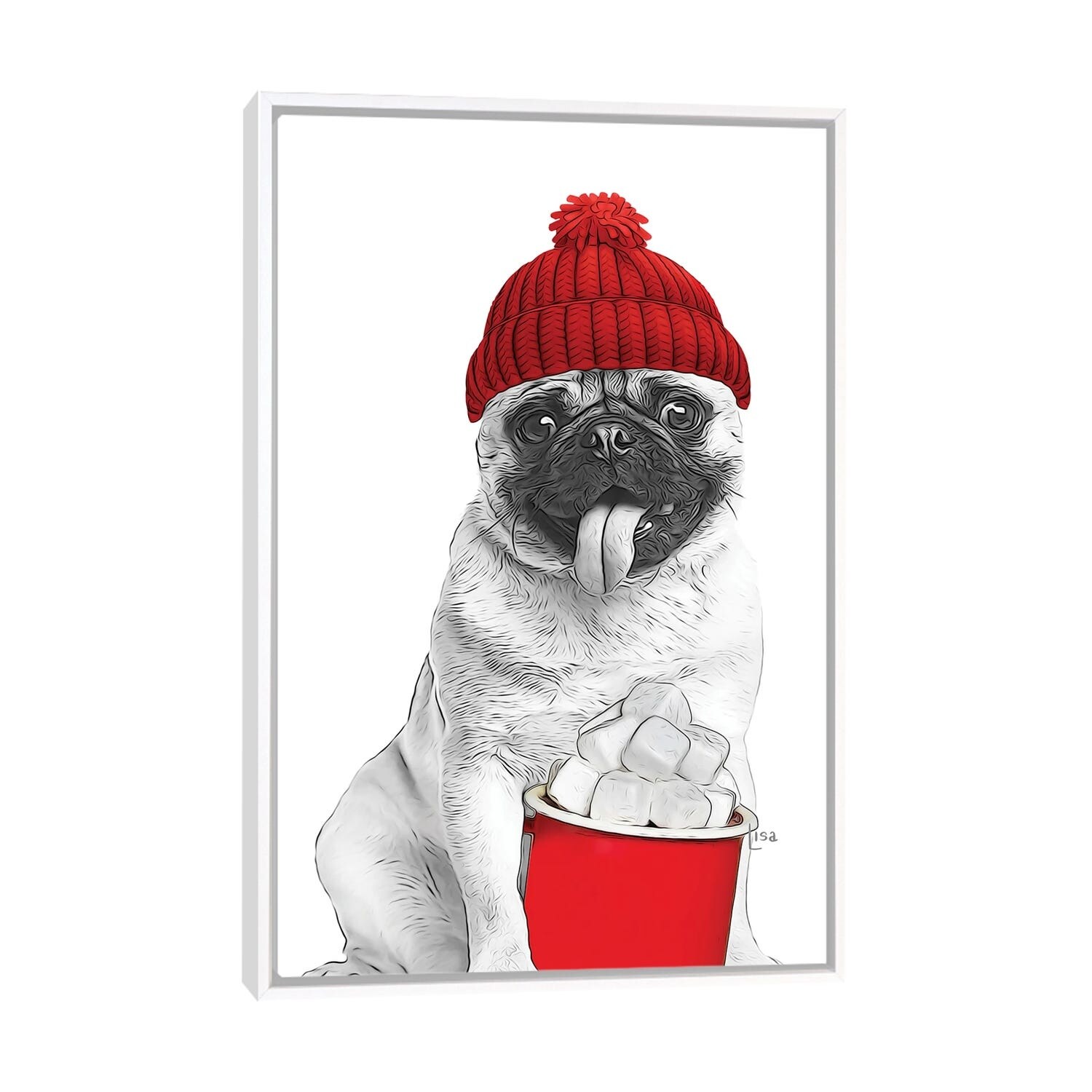 iCanvas "Christmas Pug With Glasses And Hat" by Printable Lisa's Pets Framed