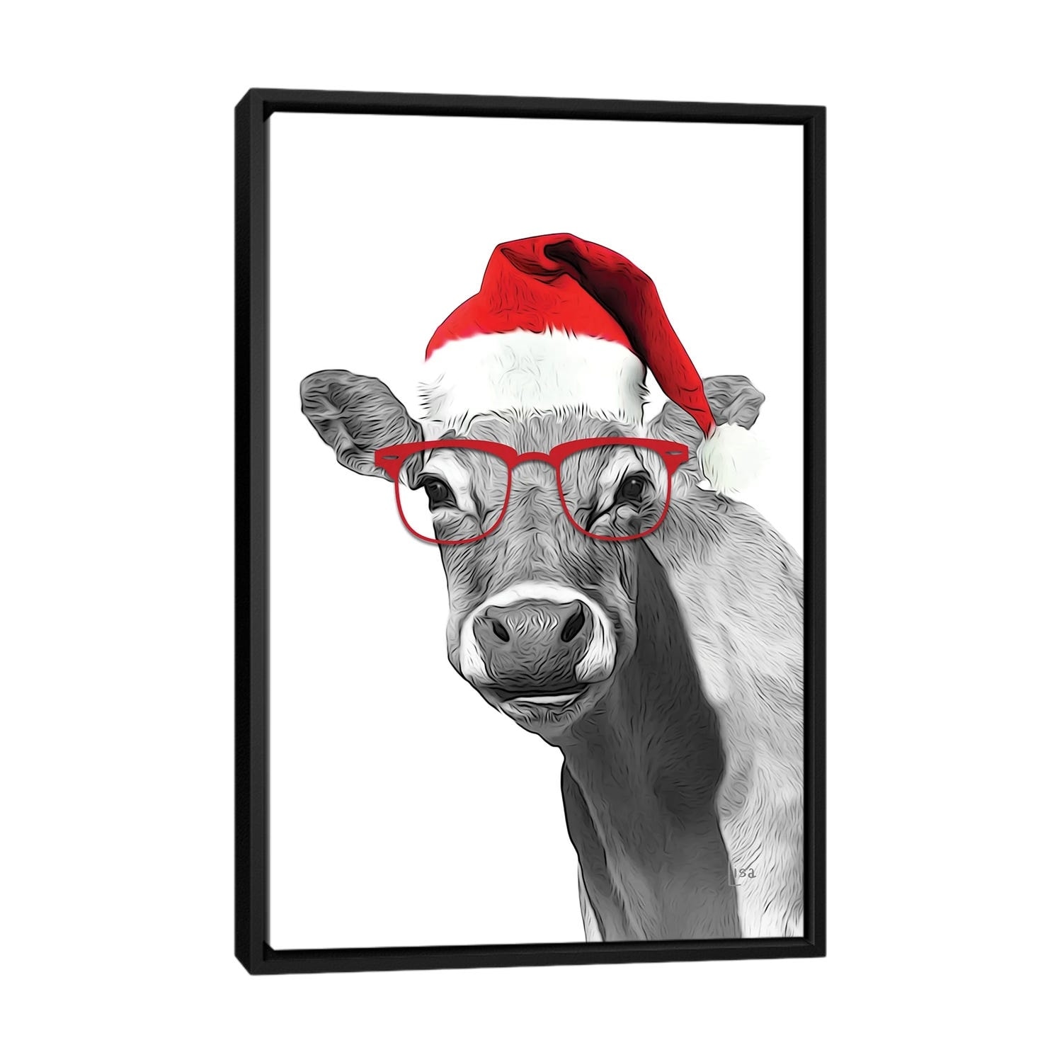 iCanvas "Christmas Cow With Glasses And Hat" by Printable Lisa's Pets Framed