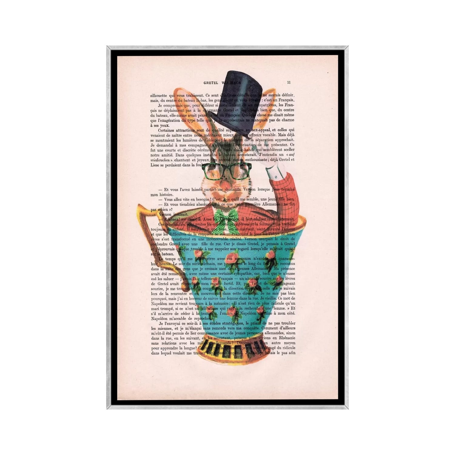 iCanvas "Ra3bit With Hat in A Cup" by Coco de Paris Framed