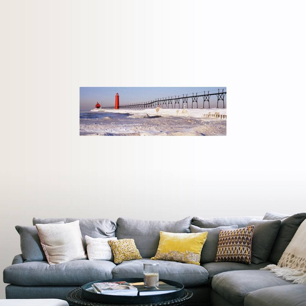 "Lighthouse near a pier, Grand Haven, Michigan" Poster Print