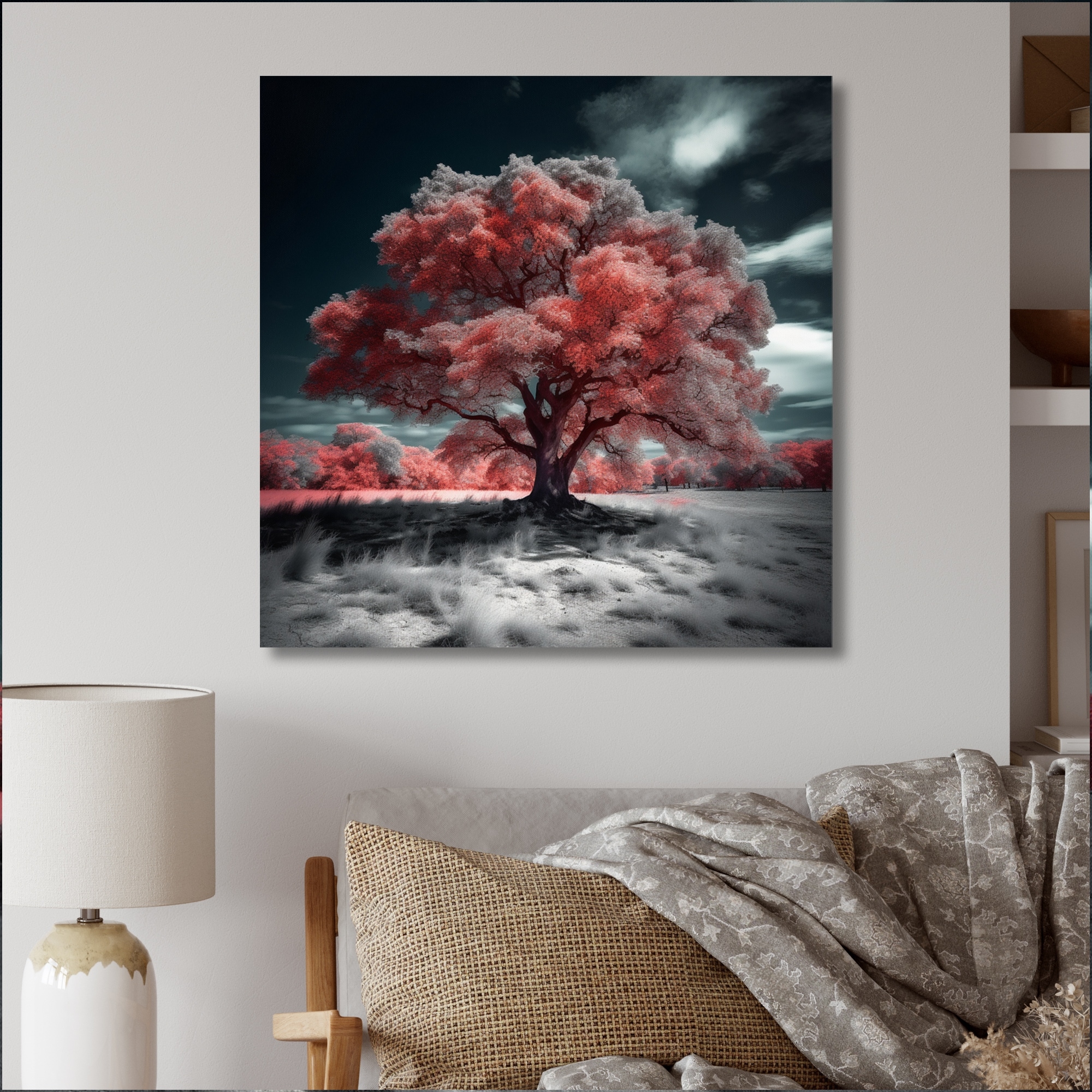 Designart "Red Tree Winter Haven" Tree Floral Canvas Print