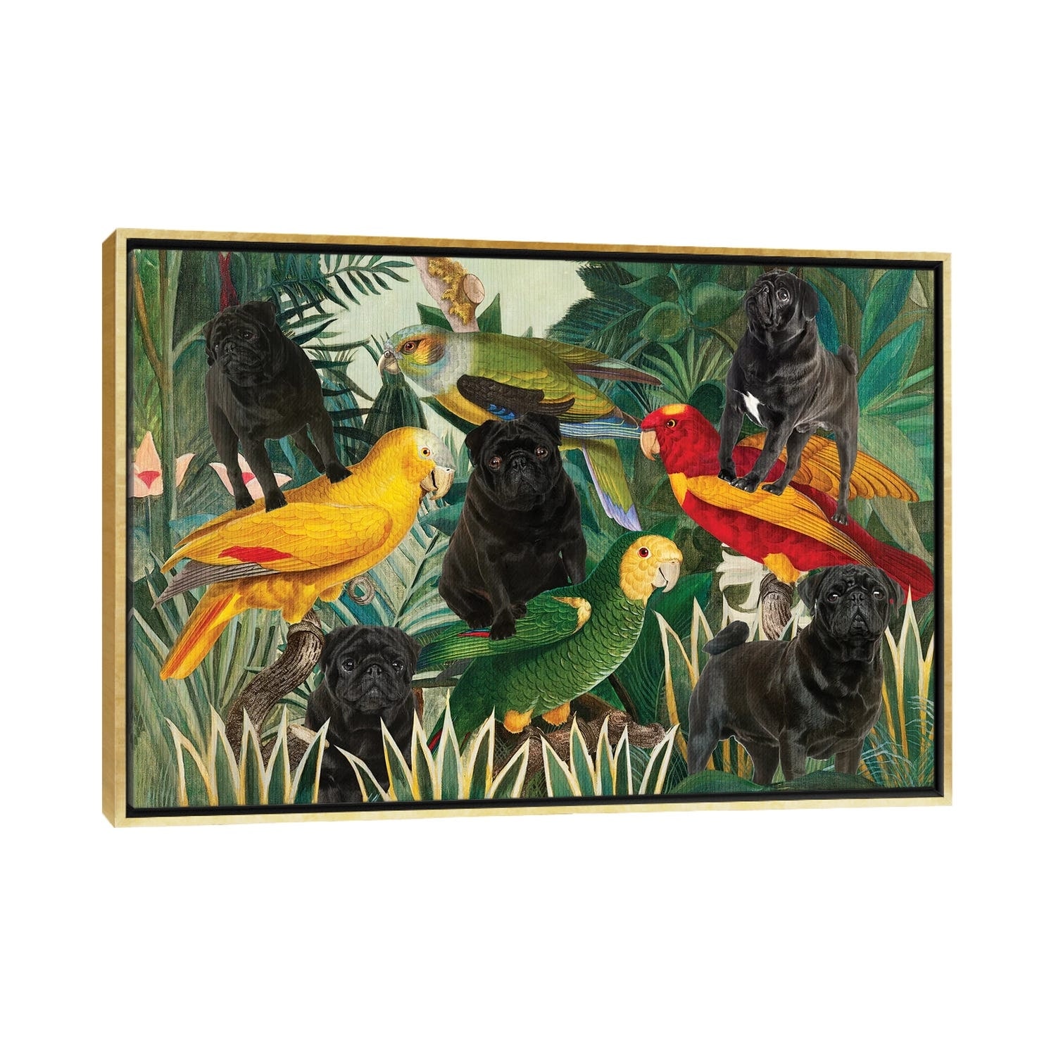 iCanvas "Pug Henri Rousseau Parrots" by Nobility Dogs Framed Canvas Print