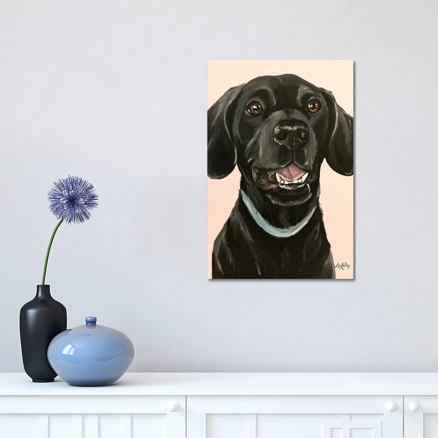 iCanvas "Black Lab on Pink" by Hippie Hound Studios Canvas Print