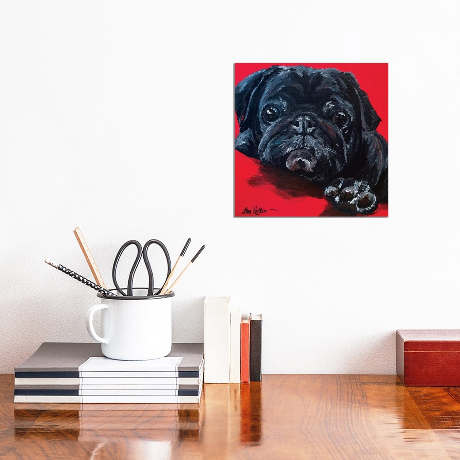 iCanvas "Pug On Red" by Hippie Hound Studios Canvas Print