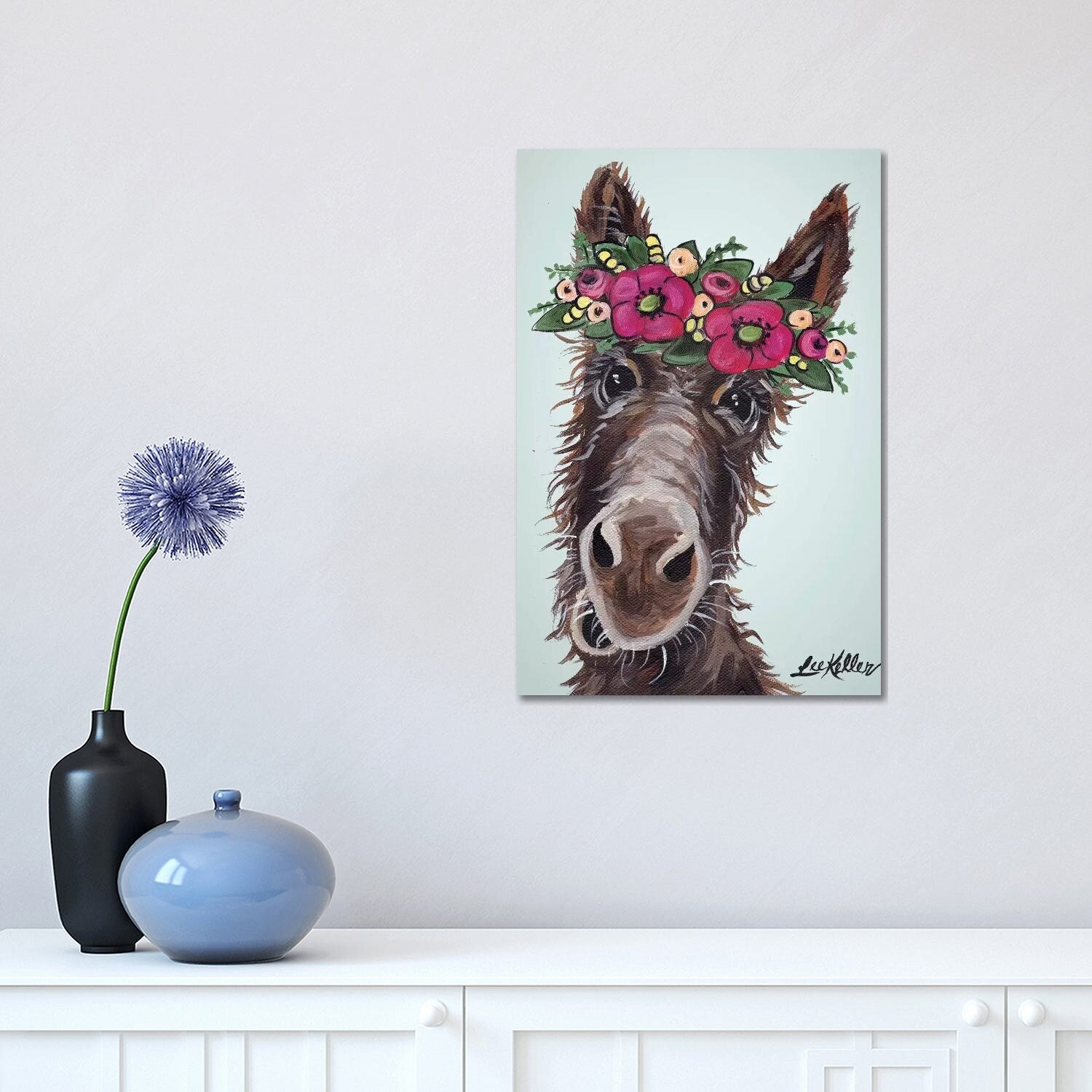 iCanvas "Donkey Pink Flowers" by Hippie Hound Studios Canvas Print