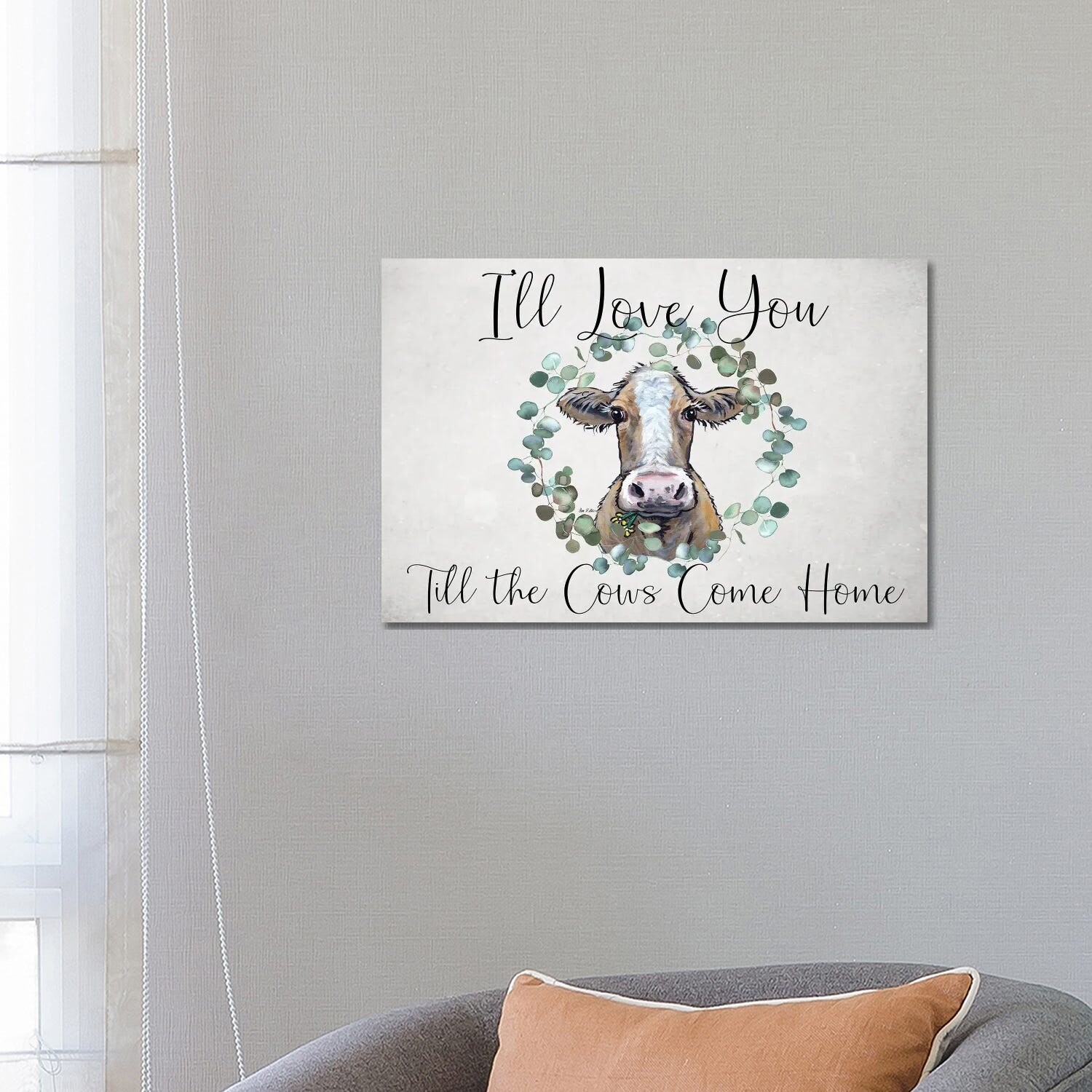iCanvas "Cow Sign, I'll Love You Till the Cows Come Home" by Hippie Hound Studios Canvas Print
