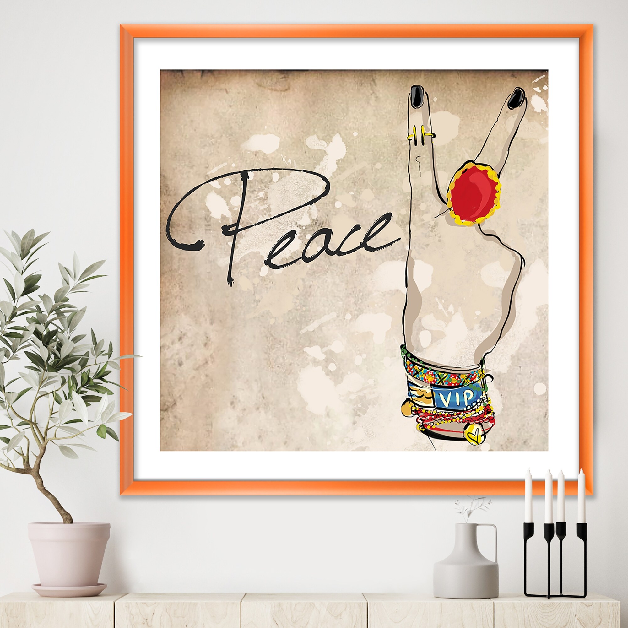 Designart "Gypsy Hippy Hand Peace" Cottage Framed Art Print