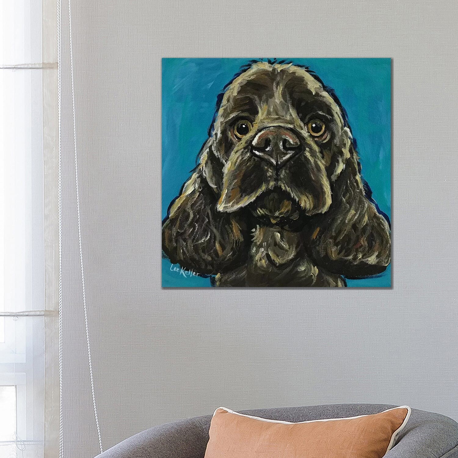 iCanvas "Cocker Spaniel on Teal" by Hippie Hound Studios Canvas Print