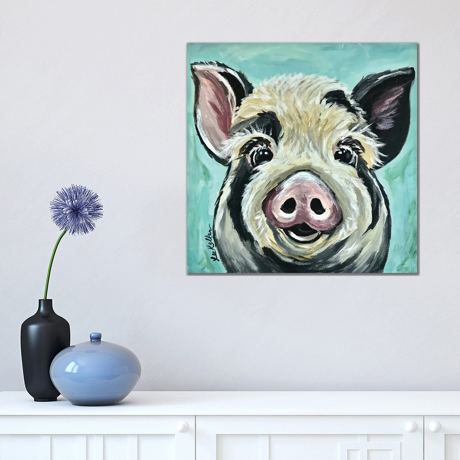 iCanvas "Rosey The Pig on Turquoise" by Hippie Hound Studios Canvas Print