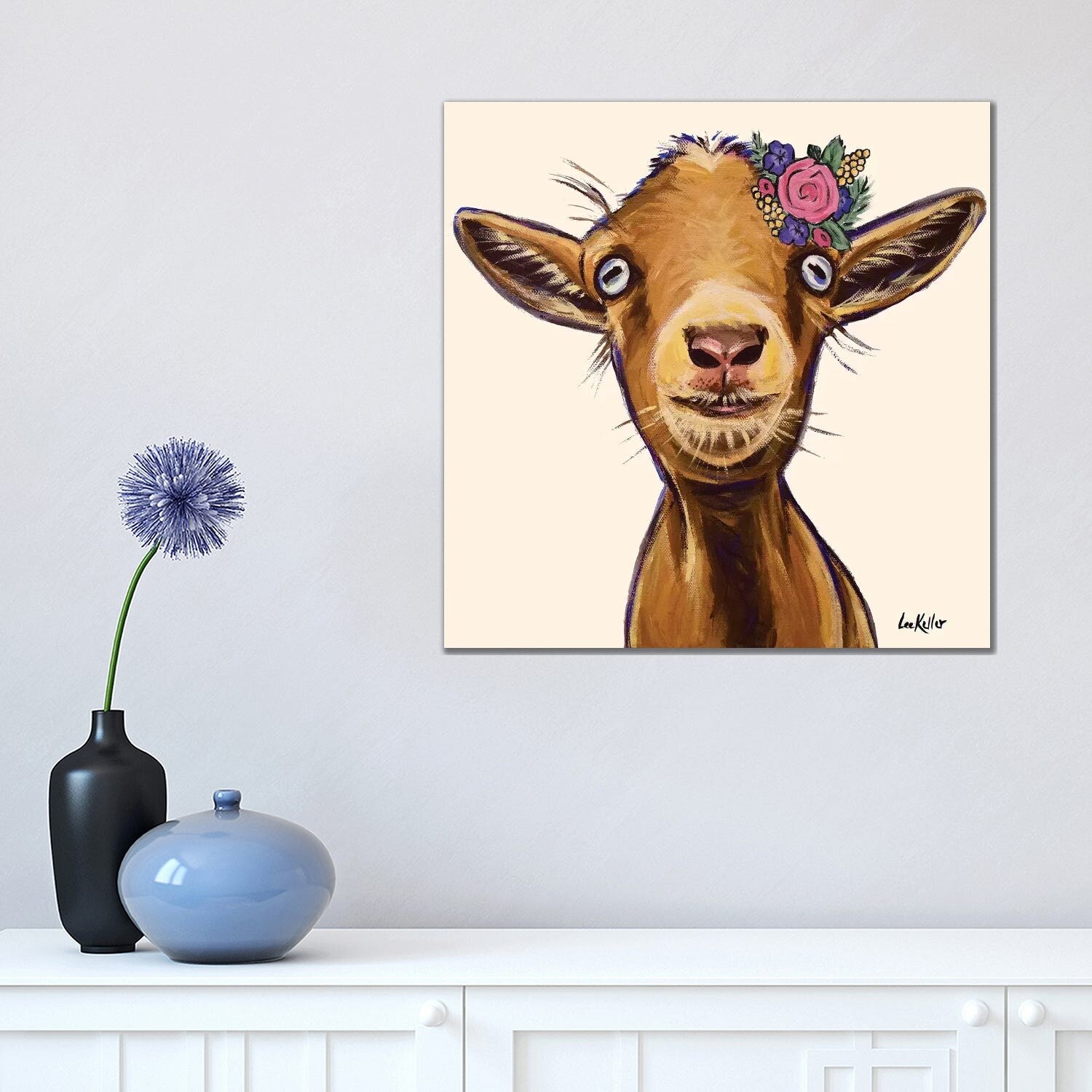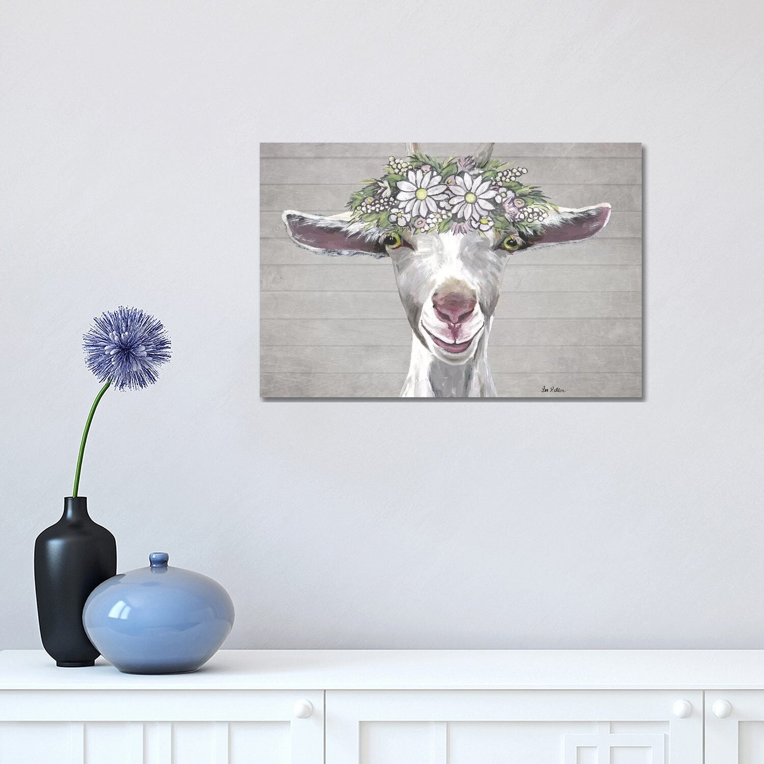 iCanvas "Luna The Goat With Daisy Flower Crown" by Hippie Hound Studios Canvas Print