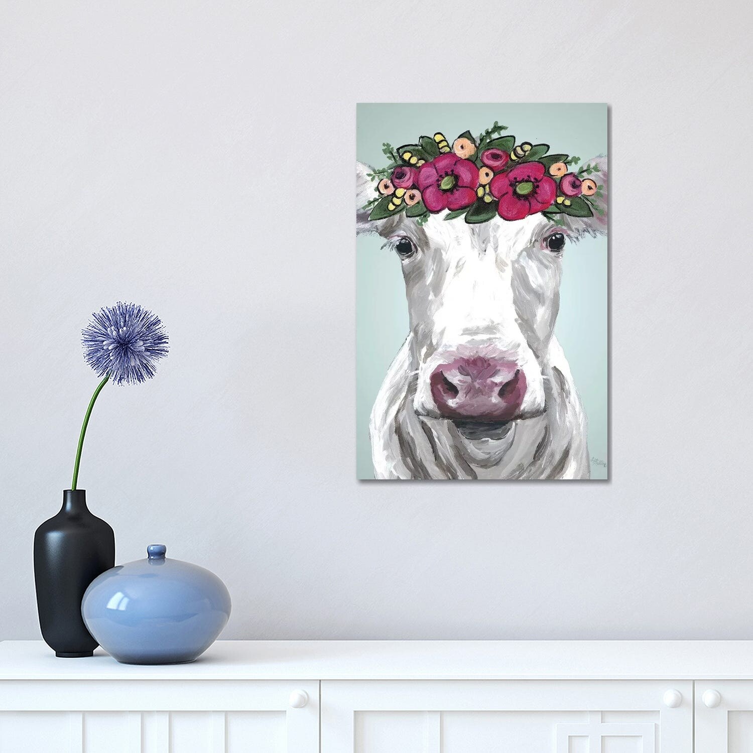 iCanvas "Cow Mabel Pink Flower Crown" by Hippie Hound Studios Canvas Print