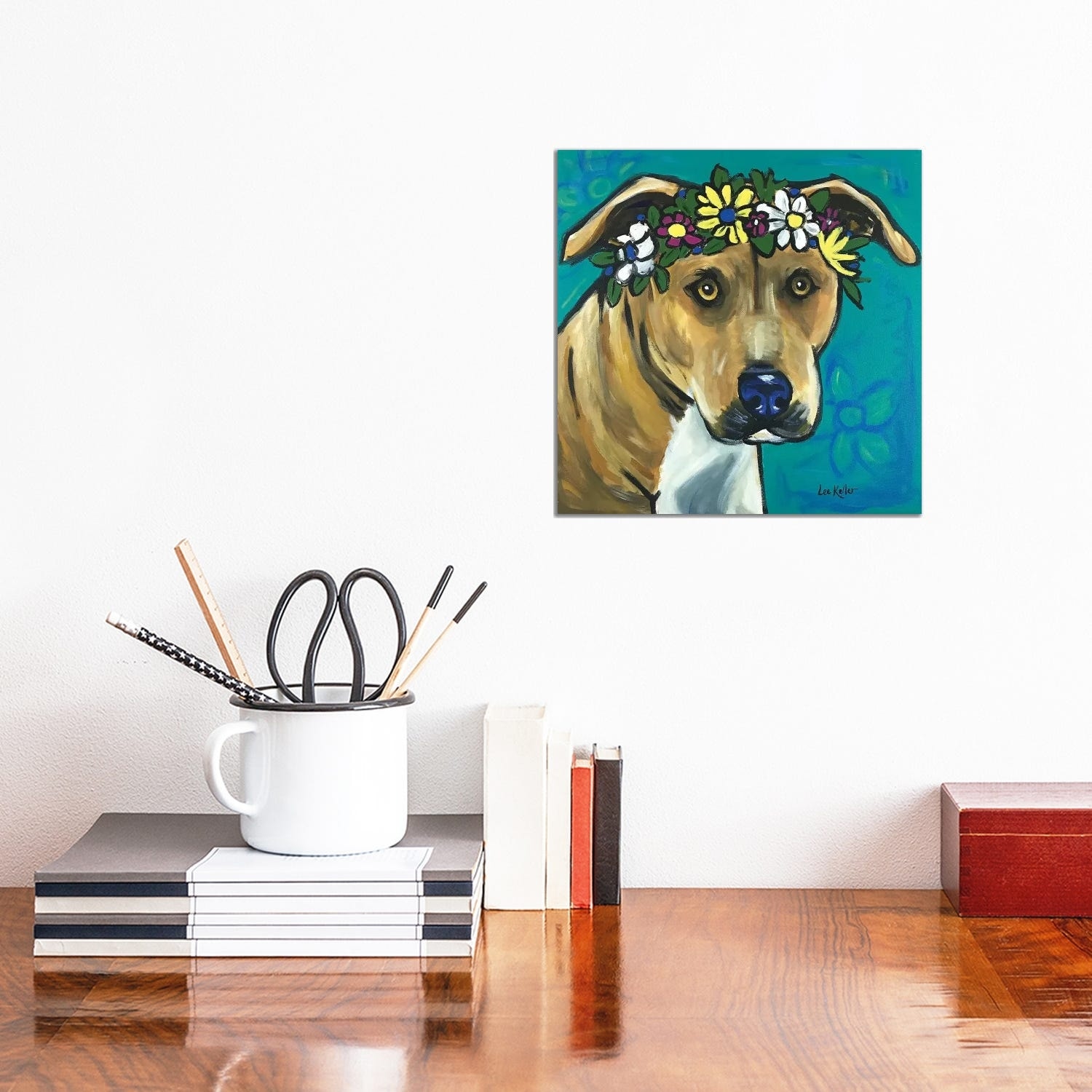 iCanvas "Pit Bull With Flowers" by Hippie Hound Studios Canvas Print