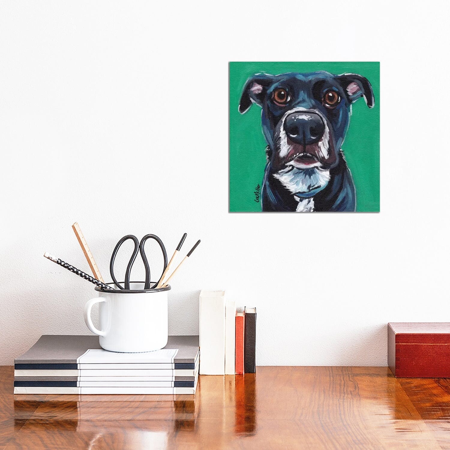 iCanvas "Expressive Black Dog on Emerald" by Hippie Hound Studios Canvas Print