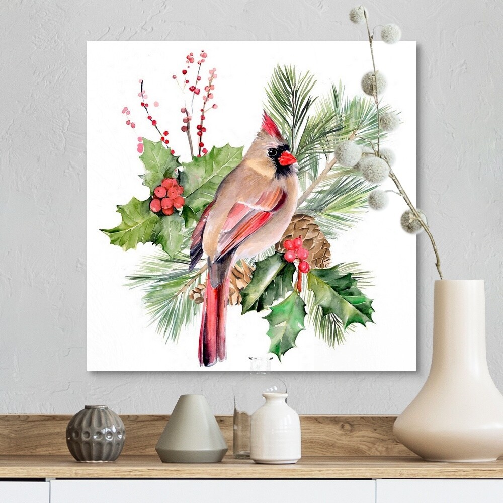 "Cardinal Holly Christmas II" Canvas Wall Art