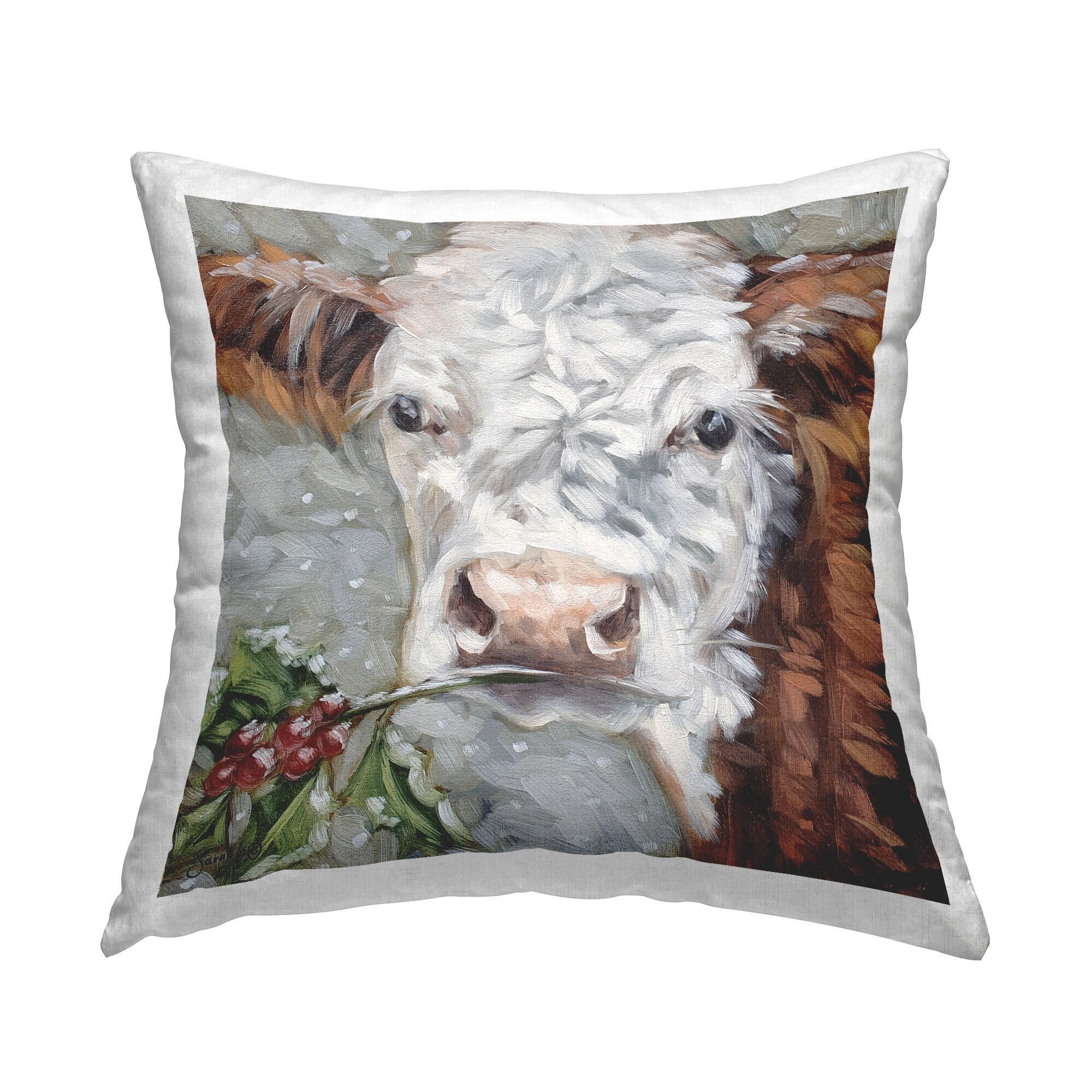 Stupell Industries Seasonal Cow Holly Sprig Printed Throw Pillow Design by Sara G. Designs