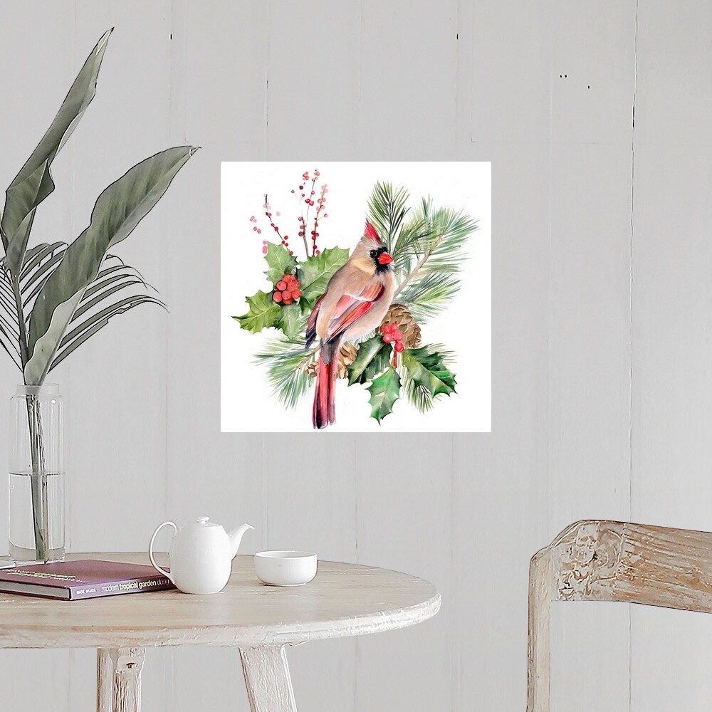 Cardinal Holly Christmas II Poster Print