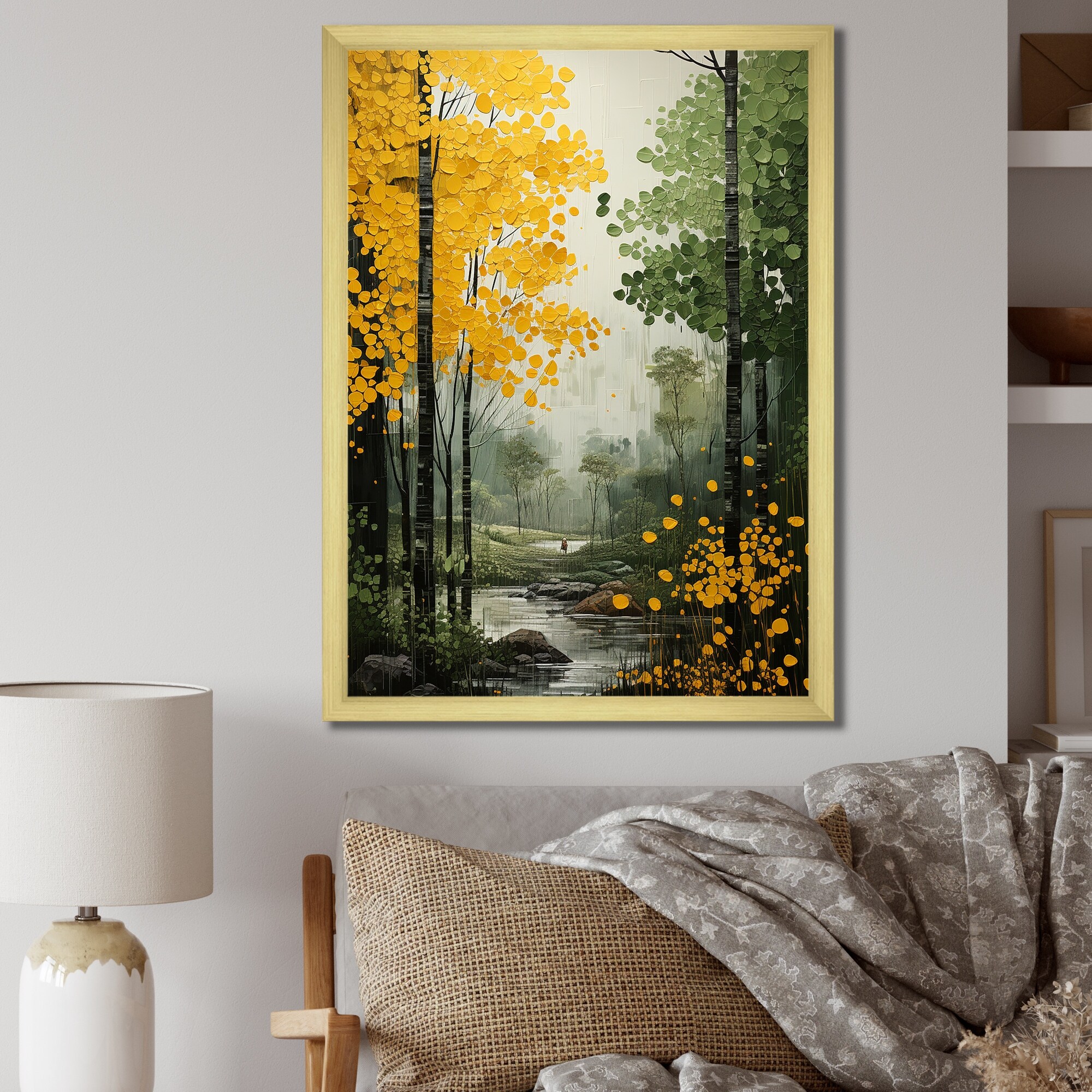 Designart "Orange Green Trees Canopy Patchwork II" Landscape Trees Framed Canvas Prints