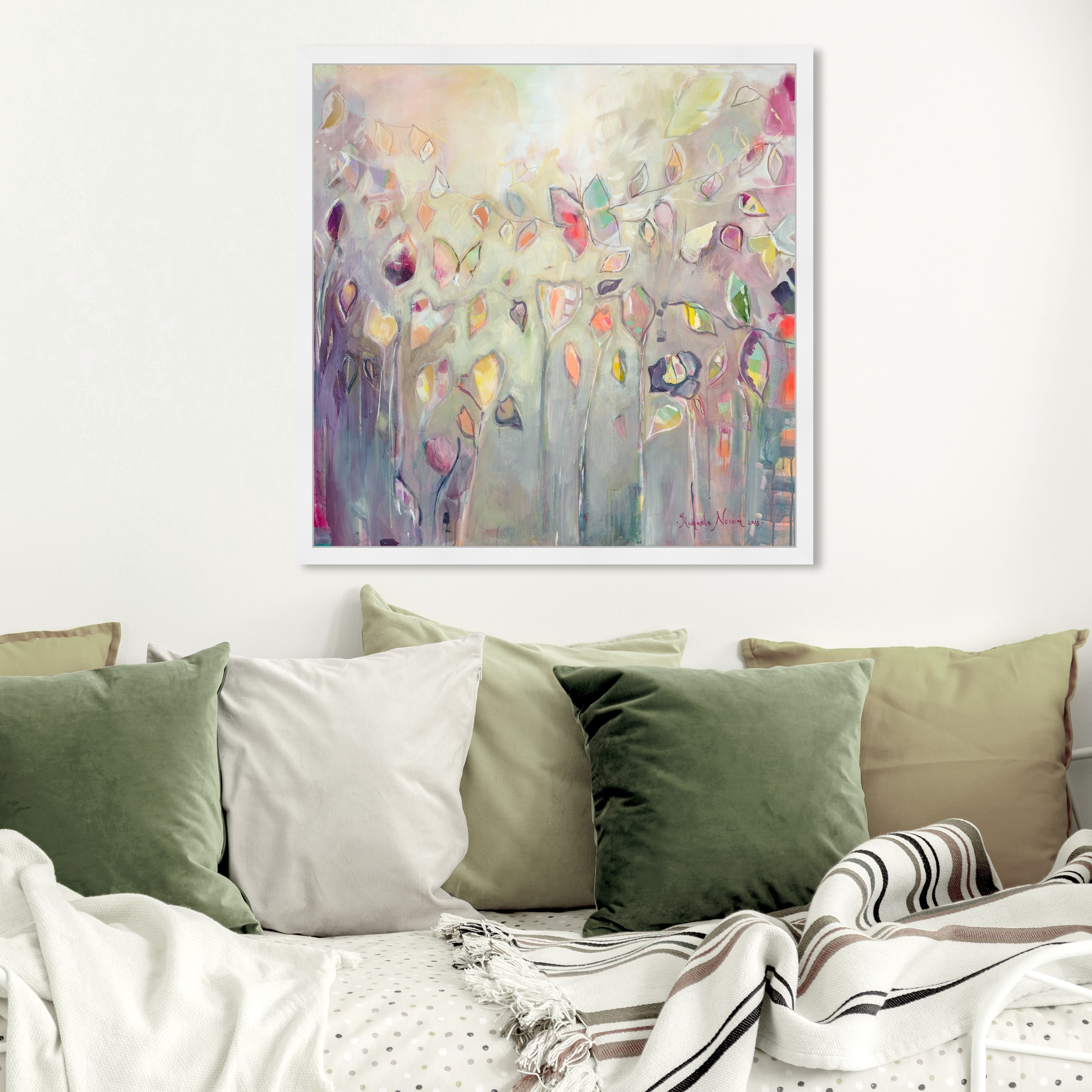 Oliver Gal 'Michaela Nessim - Butterfly' Abstract Framed Wall Art Prints Paint - Purple, Green