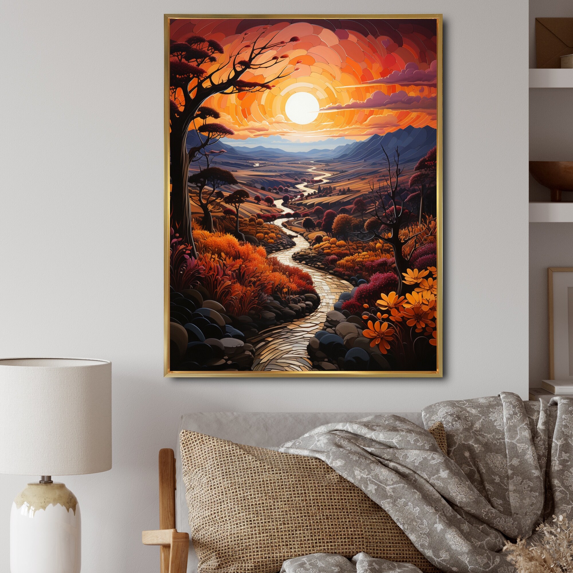 Designart "Countryside Crimson Sunset Landscape I" Countryside Framed Canvas Prints