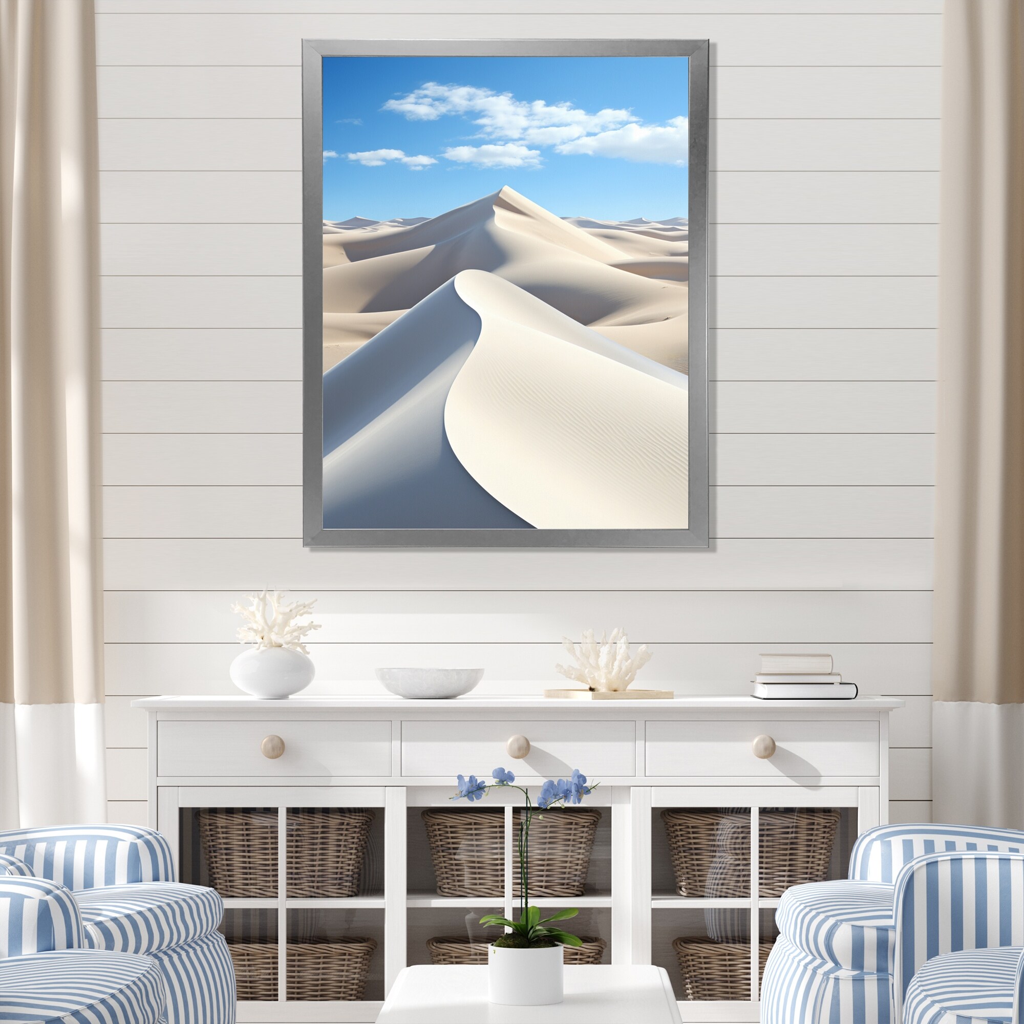 Designart "Coastal Wind Dunes I" Coastal Beach Sand Framed Canvas Art Print