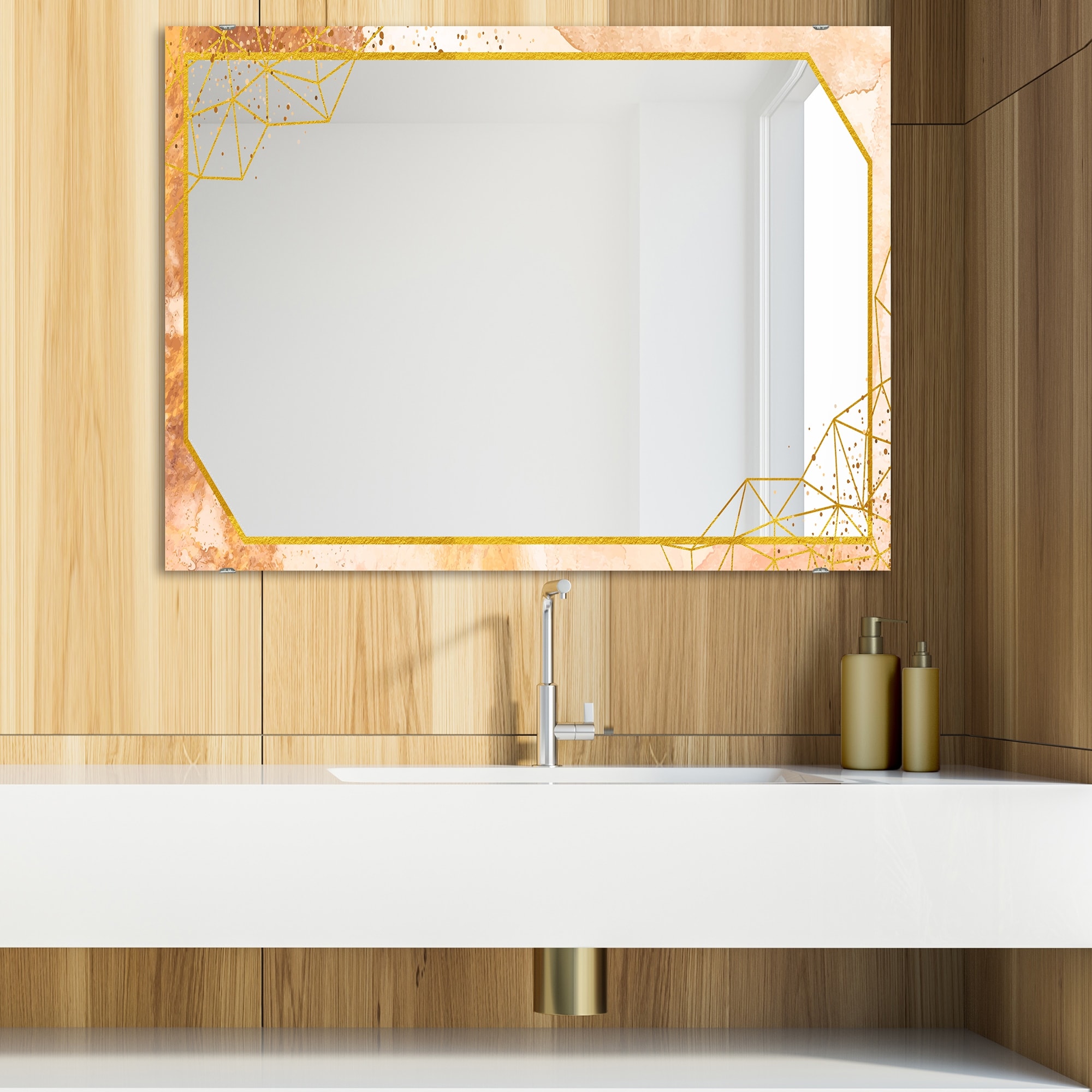 Designart 'Gold and Pink Frame 20' Glam Mirror - Modern Vanity Printed Mirror