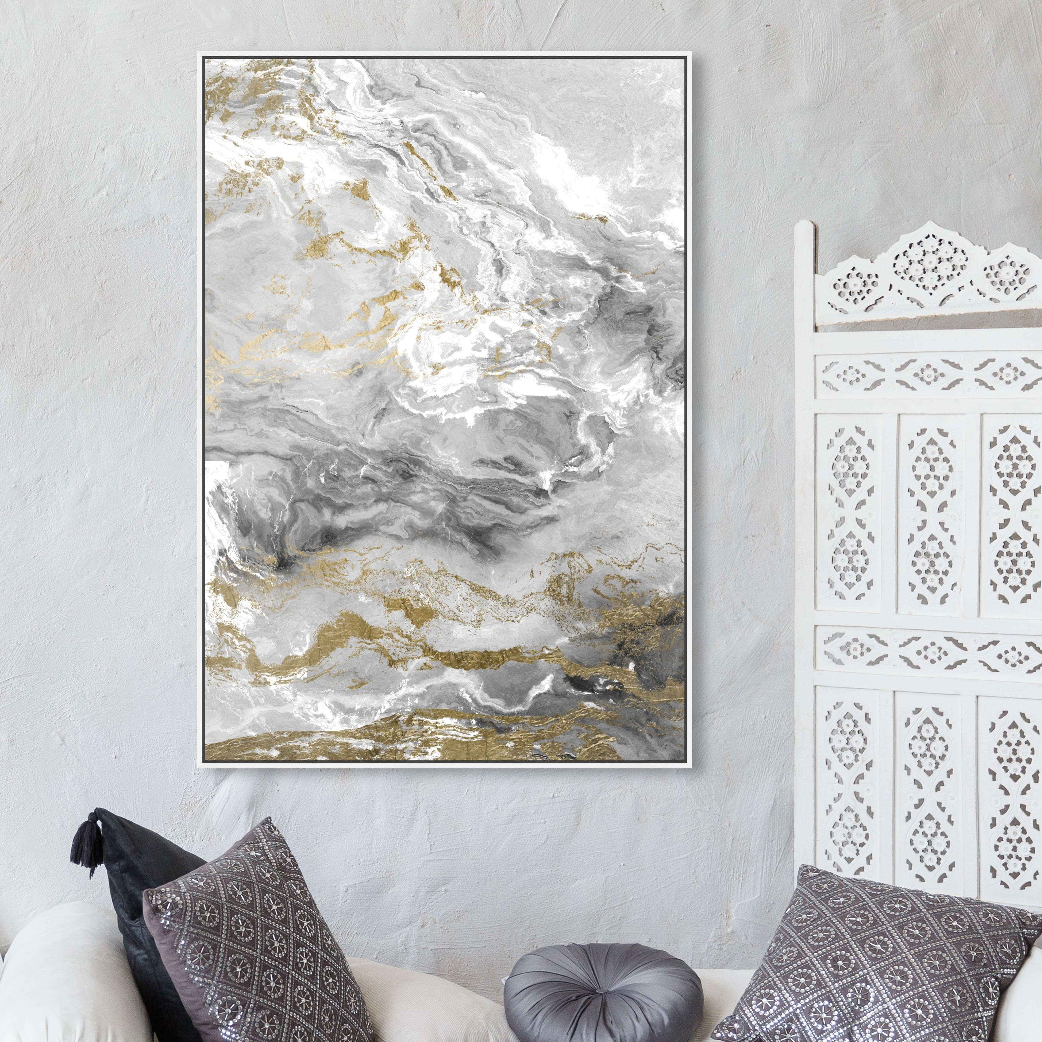 Oliver Gal 'Grazie Mille' Abstract Wall Art Framed Canvas Print Crystals - Gray, Gold
