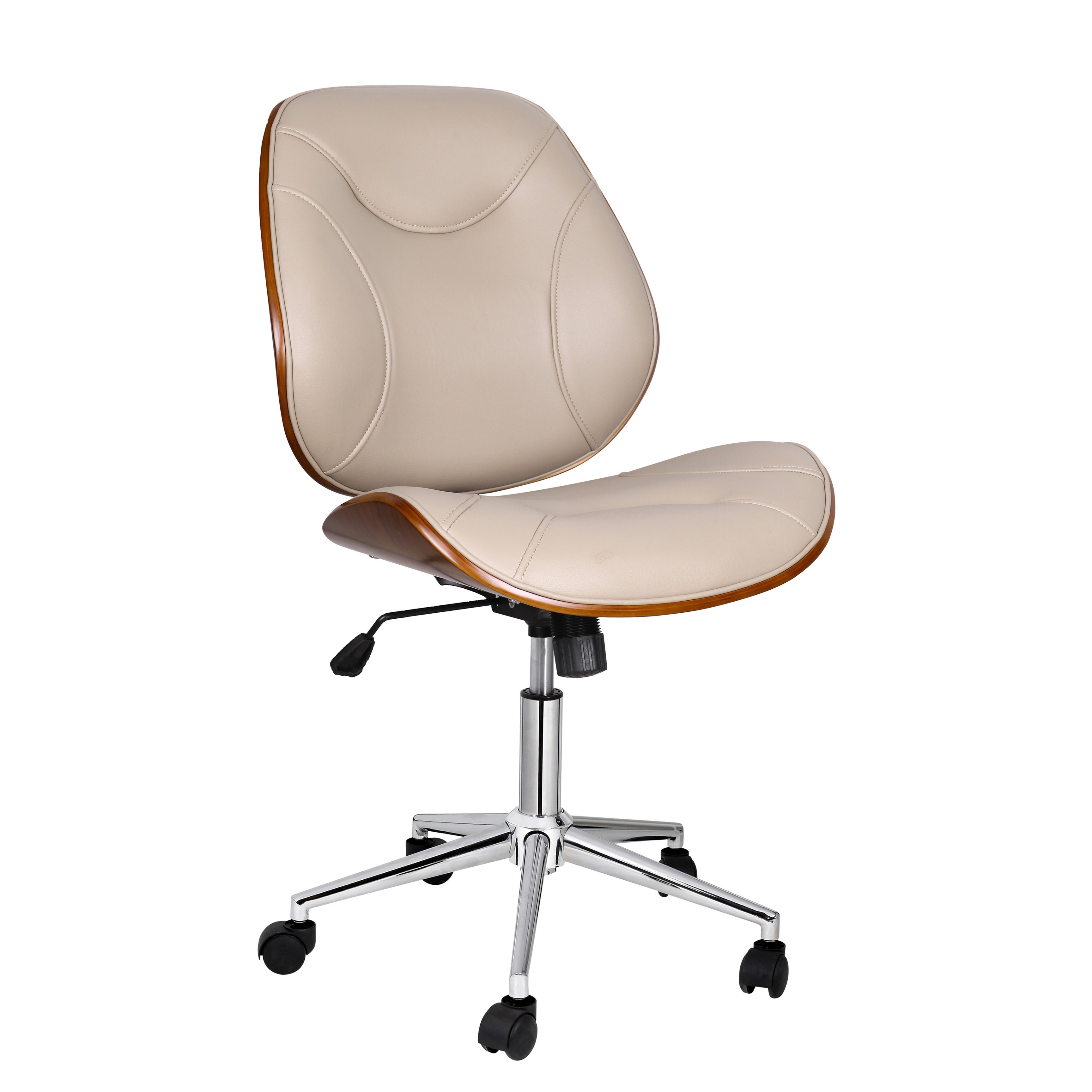 Porthos Home Izan Armless Swivel Office Chair, Chrome Base, PU Leather