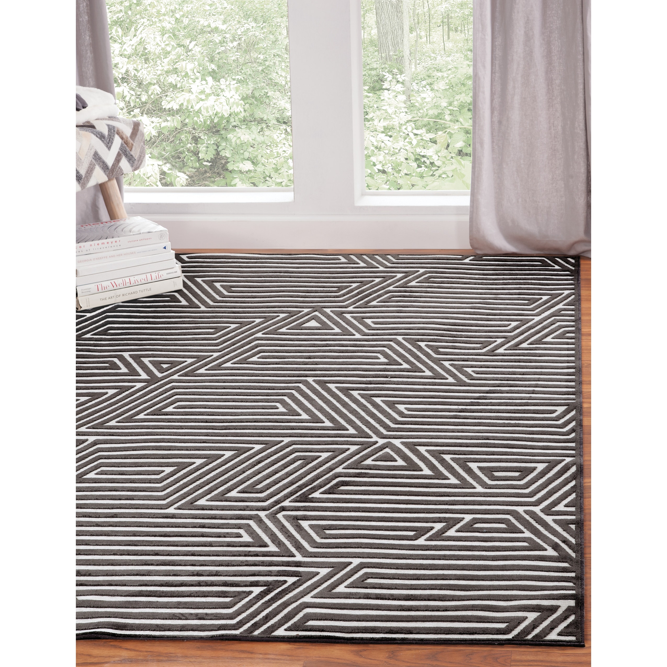 Machine Woven Non Slip Chenille Base Raised Viscose Flat Pile Jute Backing Soft Area Rug 5'3" x 7'6" Runner, Black/ Beige