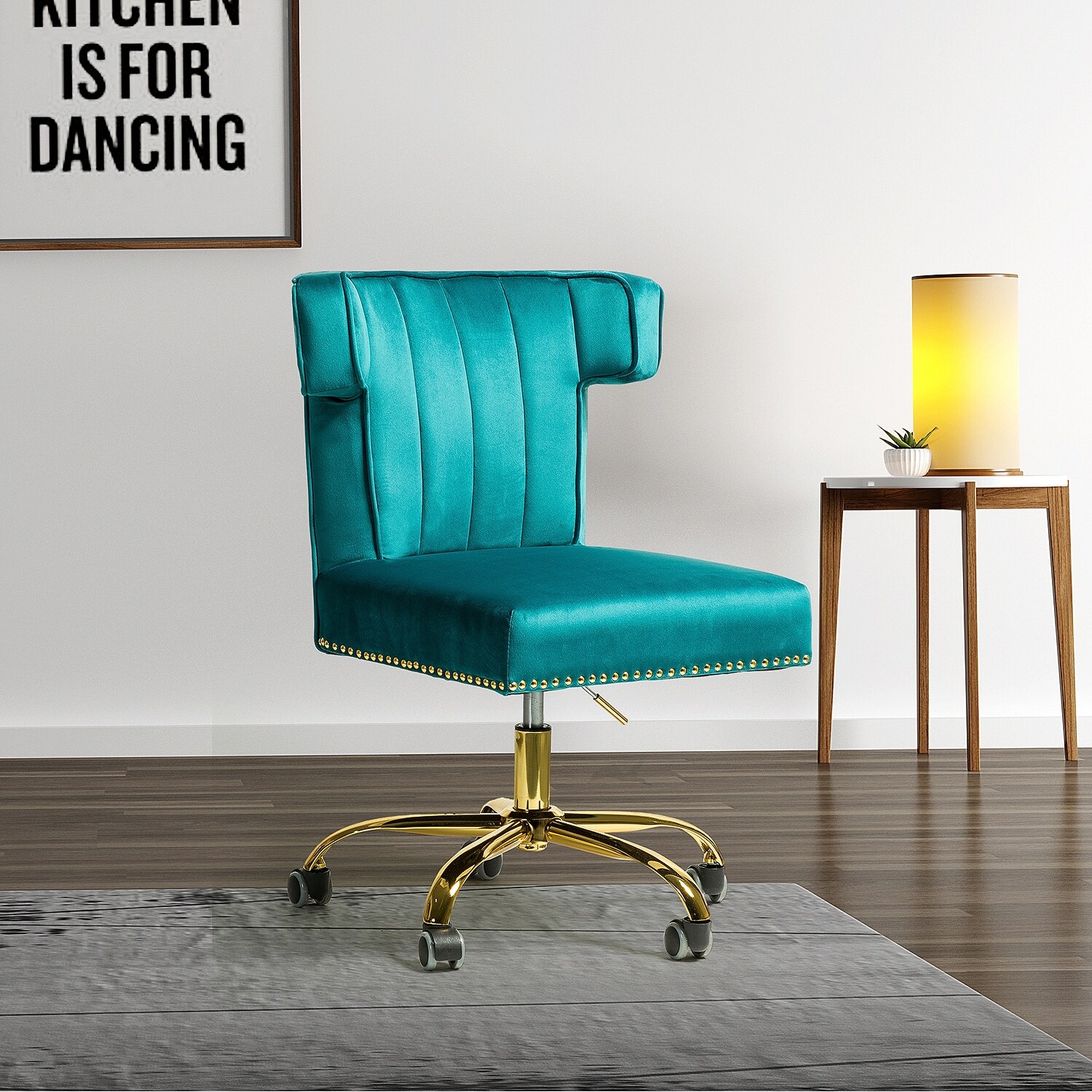 Ilia Modern Velvet Office Task Chair Tufted Back with Gold Base by HULALA HOME