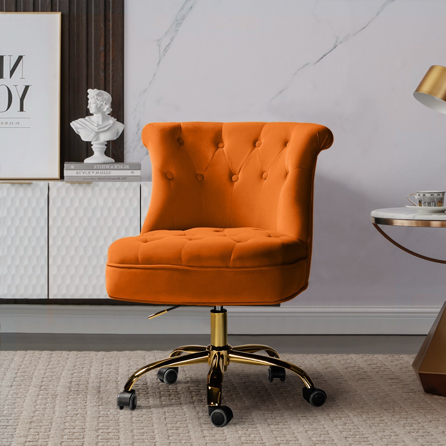 Velvet Swivel Tufted Adjustable Height Home Office Chair with Gold Base