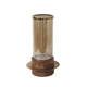 13 Inch Modern Glass Candle Holder, Tall Cylindrical Brown Wood Base