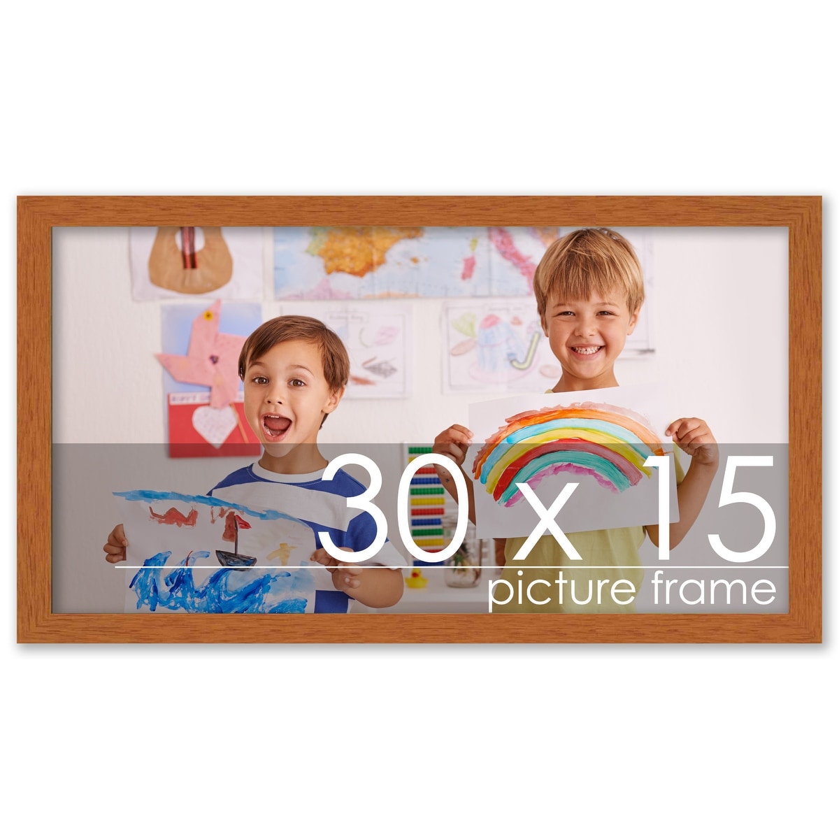 30x15 Traditional Honey Pecan Complete Wood Picture Frame with UV Acrylic, Foam Board Backing, & Hardware