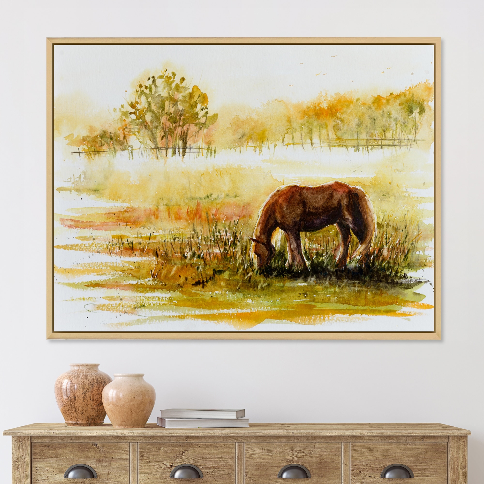 Designart "Horse Grazing on A Meadow" Farmhouse Framed Canvas Wall Art Print